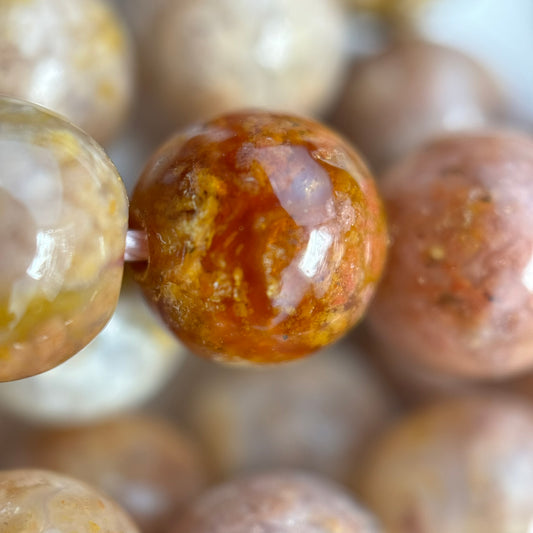 Pink Fossil Agate Polished Round Beads (8 mm)