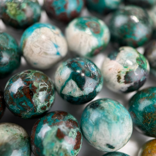 Polished Round Green Chrysocolla Precious Stone Beads - (A Quality)