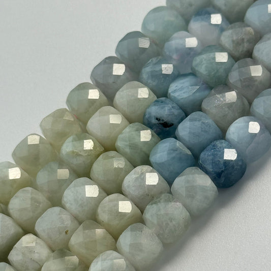 Aquamarine is typically faceted in emerald cuts, oval, pear, and cushion shapes to maximize its clarity and colour while minimizing visible inclusions.