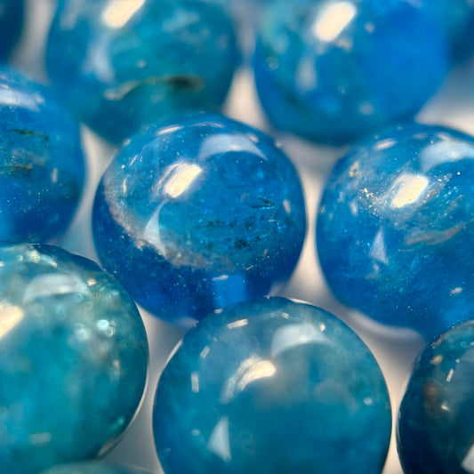 This stone is most often associated with the third-eye and throat chakras. Blue apatite, in particular, is believed to support honest self-expression and communication. Many use it in meditation or wear it as jewelry to encourage positive thinking, creativity, and inner harmony.