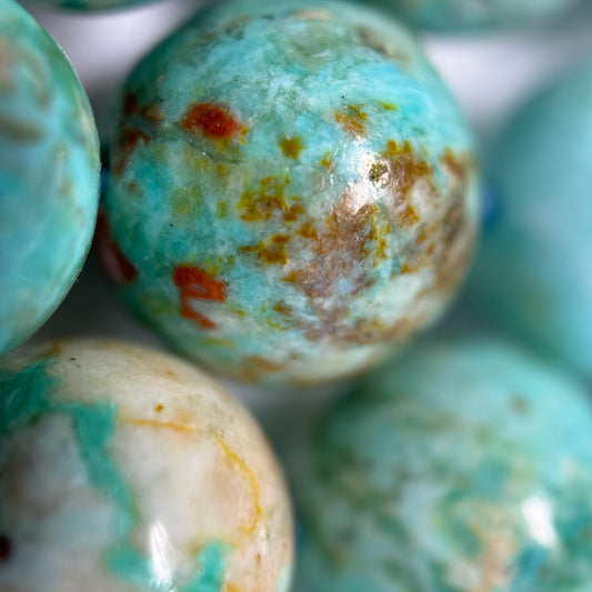 - Chrysocolla (Semi-Precious) – Blue-Green: Soft stone often mixed with quartz or malachite
