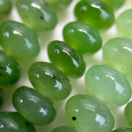 - Chrysoprase (Semi-Precious) – Apple Green: A rare, translucent variety of chalcedony