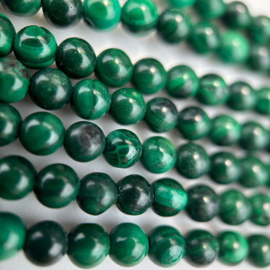 - Malachite (Semi-Precious) – Banded Dark and Light Green: Distinct banding; often used in carvings and beads
