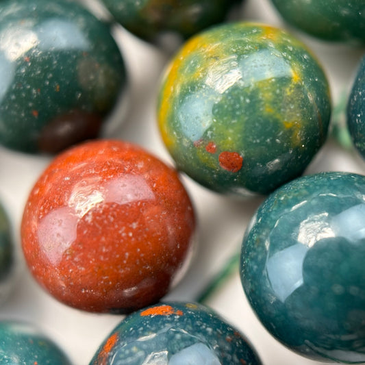 - Bloodstone (Semi-Precious) – Dark Green with Red Flecks: A variety of chalcedony; also known as heliotrope