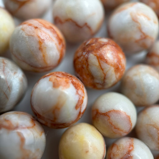 Fake Jasper beads may be made from dyed or painted materials that try to mimic the natural patterns of Jasper. These imitations typically feel lighter and less cold to the touch than genuine Jasper. They may also show signs of wear or color fading with time.
