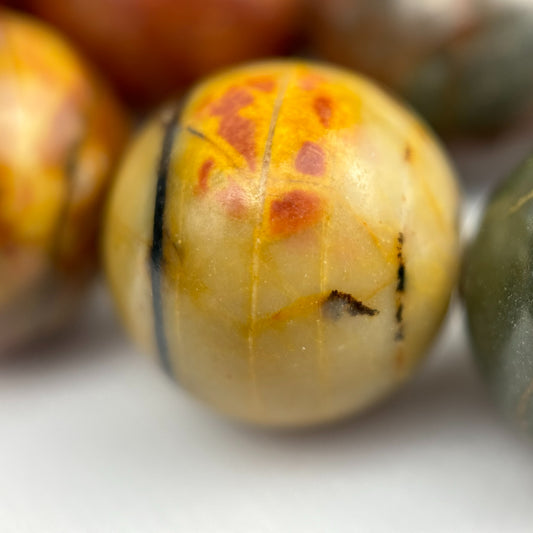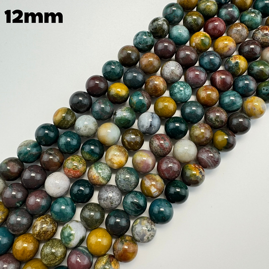 Jasper beads are gemstone beads made from Jasper, a variety of chalcedony that's classified as a semi-precious stone. Known for its striking patterns, colors, and ability to be polished to a high shine, Jasper is commonly used in jewelry making for its beauty and symbolic meanings.