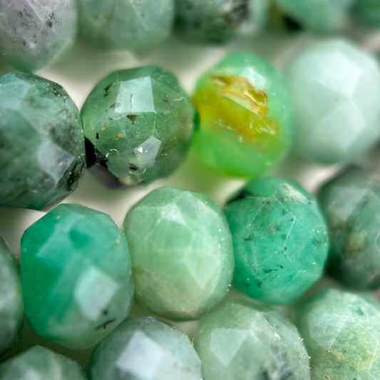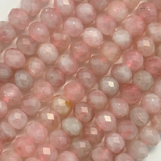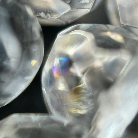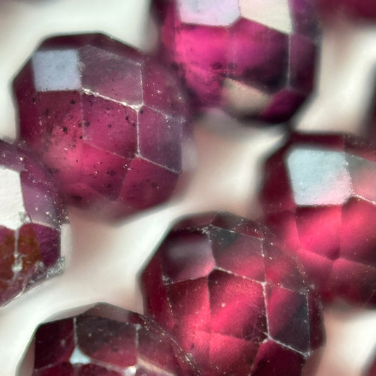 "Faceted" refers to the tiny flat surfaces (facets) cut into the bead's surface to reflect light. Faceting enhances sparkle, especially in crystals or transparent gemstones. Faceted rondelle beads shimmer more than smooth beads, making them ideal for elegant or evening designs.
