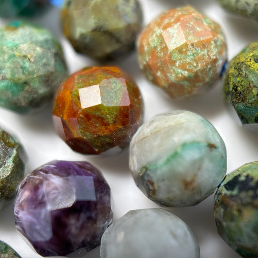 Shop our exquisite faceted round gemstone beads collection, where precision meets beauty in every facet. Whether you're searching for vibrant crystal beads, striking black opal, or the natural charm of rough stones, our selection has something to suit every style. Featuring a range of high-quality gemstones like quartz, labradorite, and amazonite, these beads are perfect for creating unique jewelry designs. Enhance your creations with beads that showcase the natural brilliance and color of each gemstone, making every piece you design stand out.