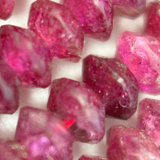 Ruby gemstone beads are small, cut pieces of natural or synthetic ruby used in making jewelry like necklaces, bracelets, and earrings.