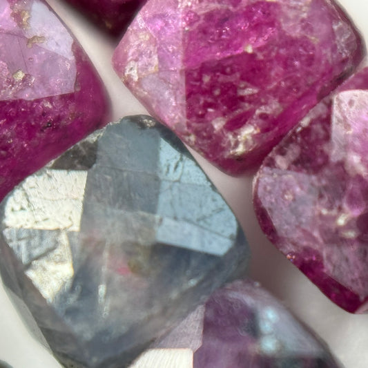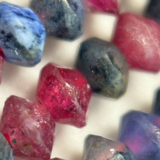 Ruby gemstone beads are small, cut pieces of natural or synthetic ruby used in making jewelry like necklaces, bracelets, and earrings.