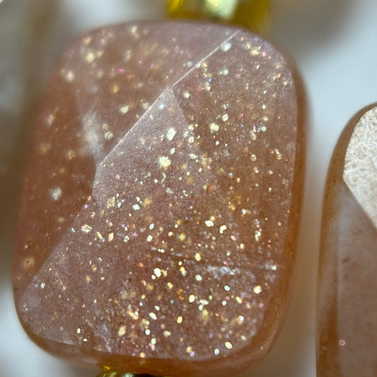 Moonstone beads add a mystical glow and are believed to enhance intuition and emotional balance, while sunstone beads bring warmth, energy, and are thought to promote positivity and vitality.