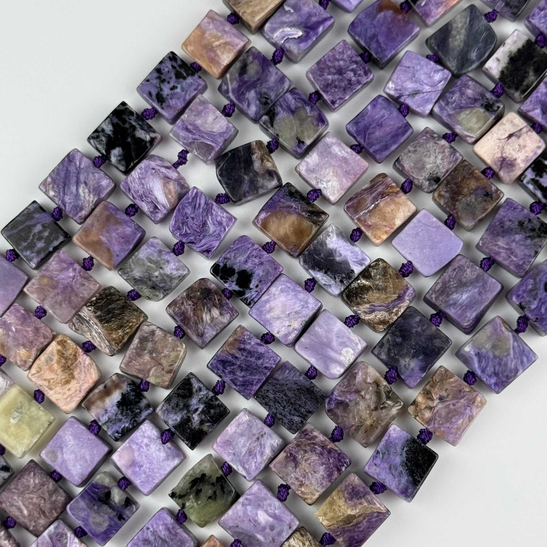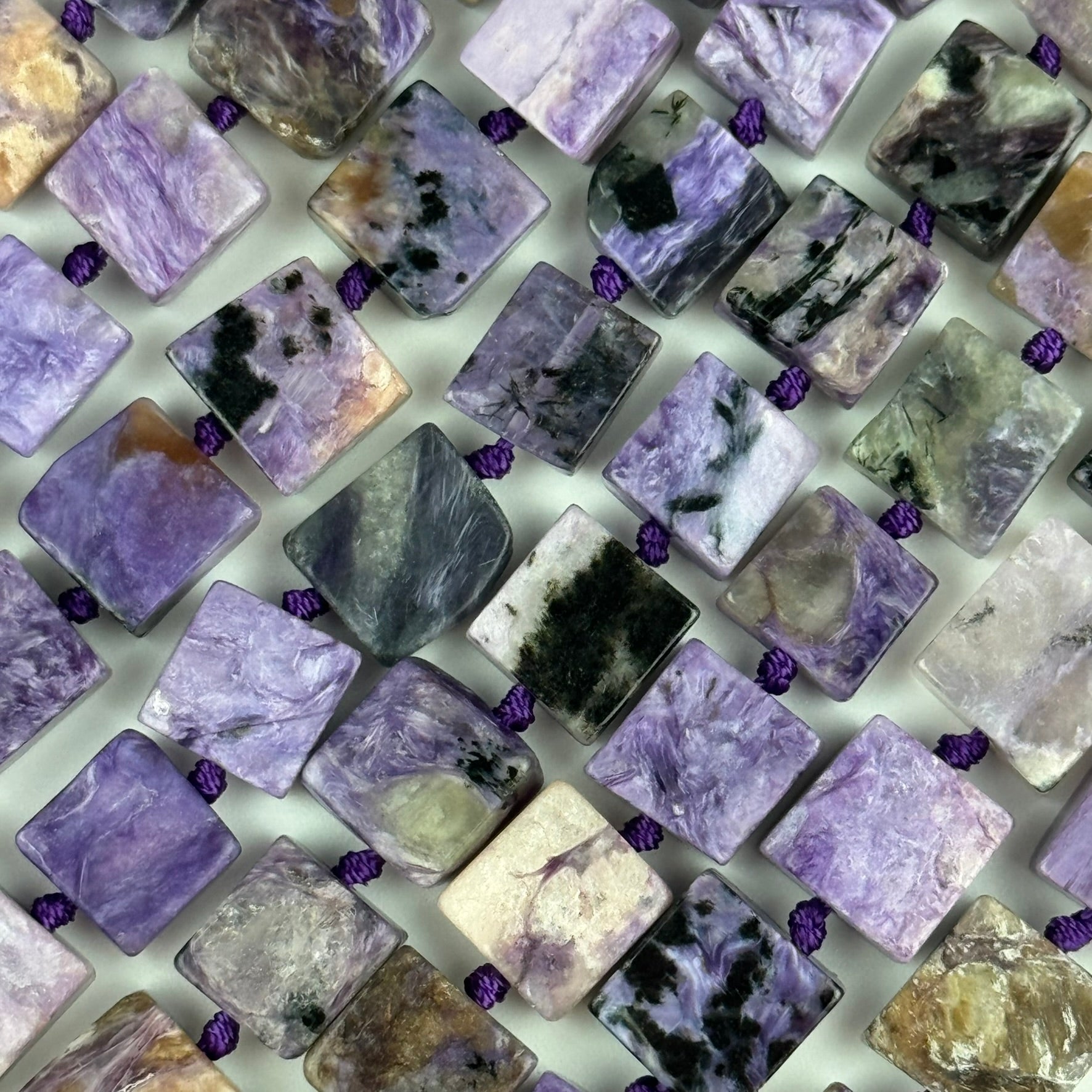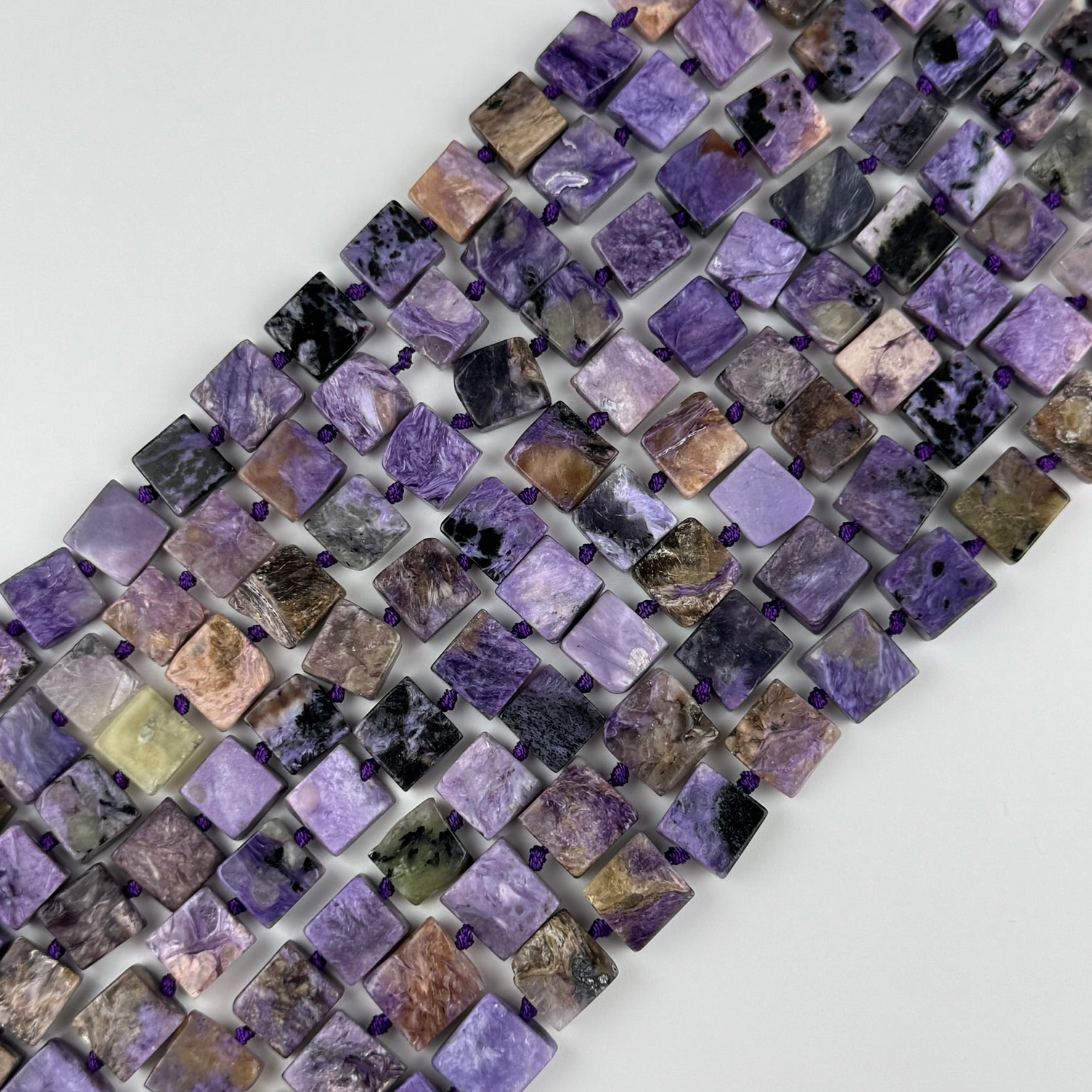 Add a contemporary and mystical touch to your jewelry with Charoite Square Flat Polished Gemstone Beads – AB Quality. These square flat beads feature deep purple hues with unique swirling patterns, perfect for bracelets, necklaces, earrings, and artisan designs. Their transformative and spiritual energy makes every piece both stylish and meaningful. 💜✨