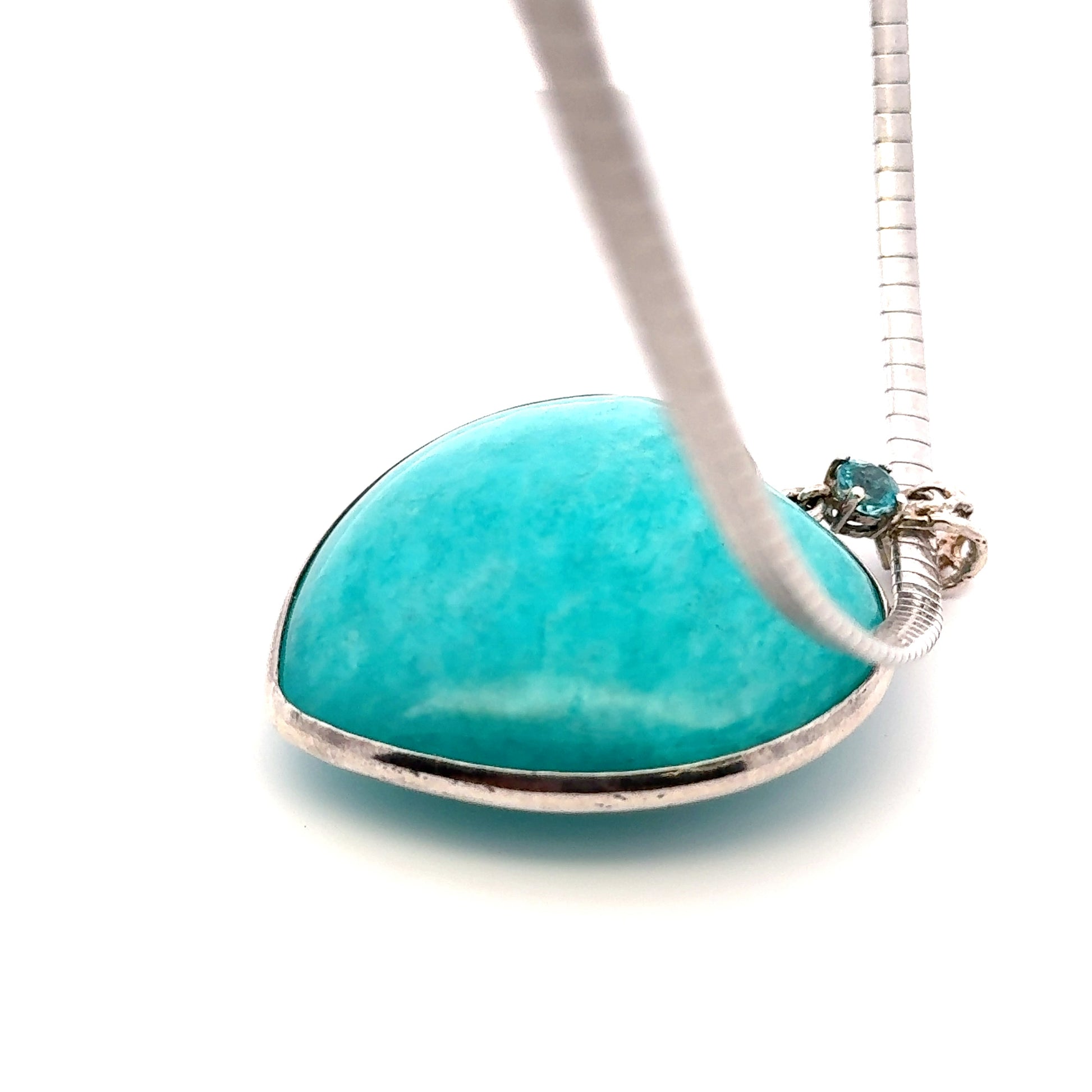 Amazonite Pendant with One Natural Blue Zircon – Handmade 925 Sterling Silver Design