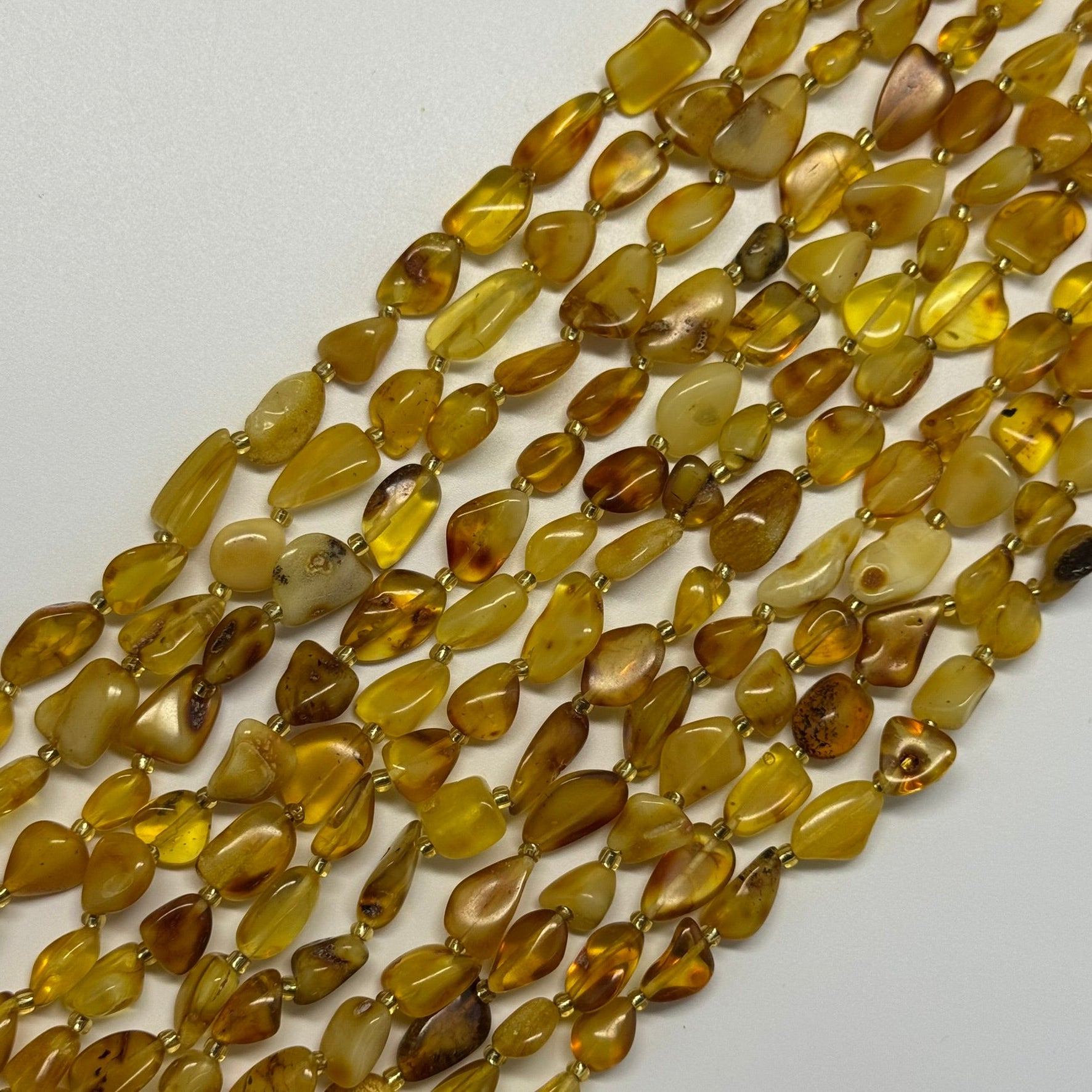Bring soft, creamy warmth to your designs with our Amber Butterscotch Freeform Beads (AA Quality). These uniquely shaped beads feature gentle buttery tones and natural marbling that make every piece feel organic and expressive. Their smooth finish and distinctive freeform style add texture and personality to bracelets, necklaces, and artisan jewelry—perfect for creators who want something charming, earthy, and visually captivating.