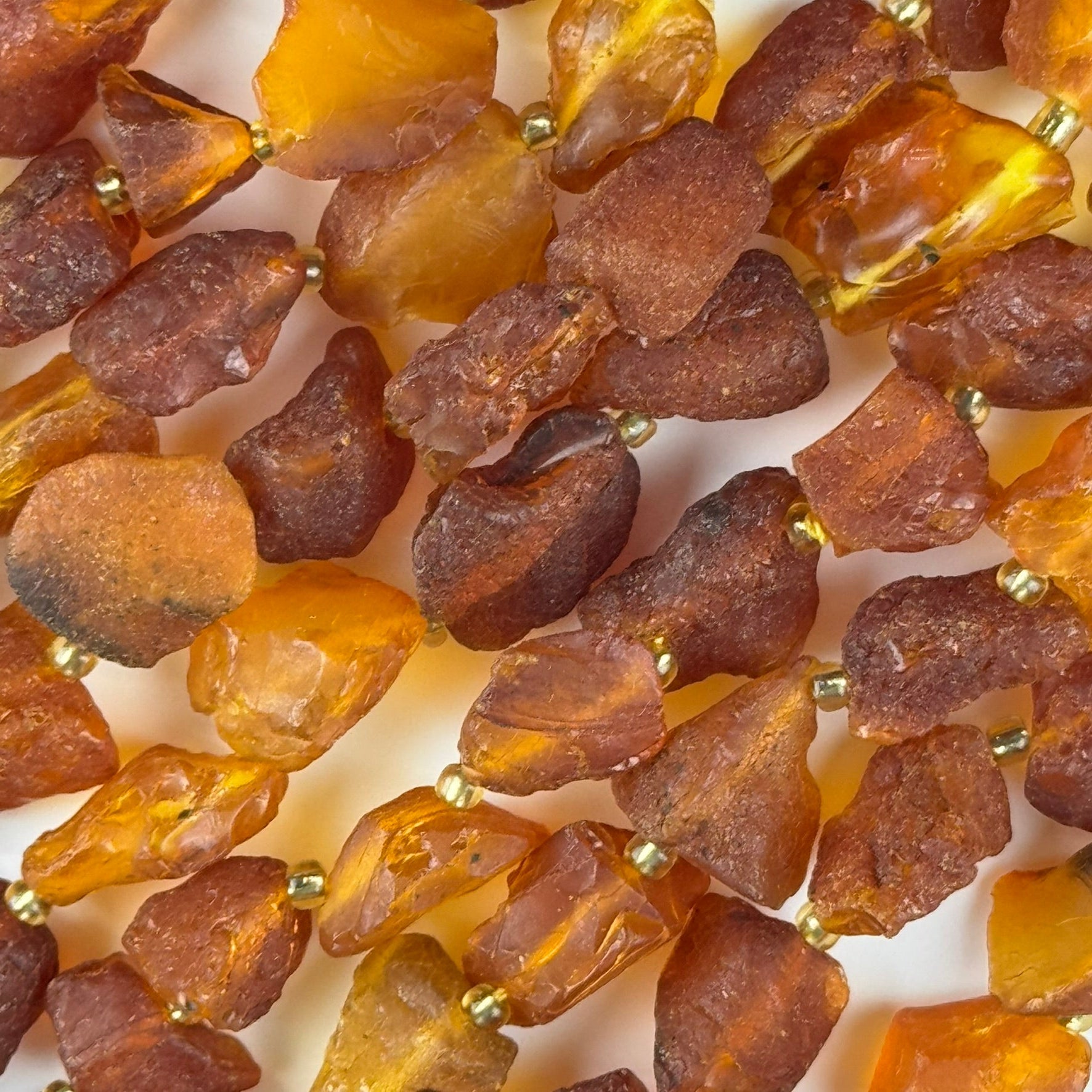 Introduce an earthy, organic flair to your creations with our Amber Raw Cognac Beads (A Quality). These beads feature a natural, unrefined texture with warm cognac hues that highlight the authentic beauty of raw amber. Perfect for rustic, boho, or nature-inspired jewelry, these beads add depth, character, and a grounding presence to bracelets, necklaces, and artisan designs.