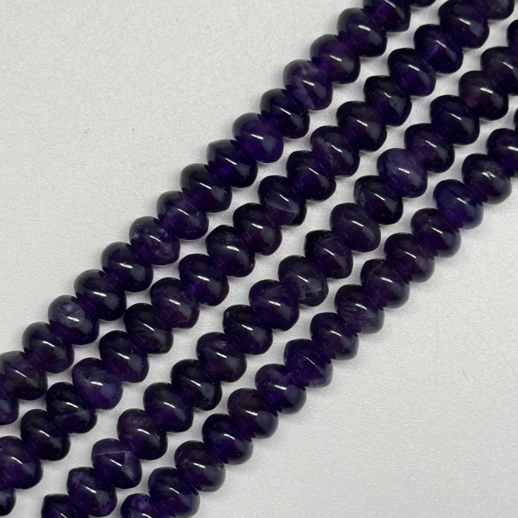 Add a touch of elegance with Amethyst Polished Rondelle Beads - (AA Quality). These smooth, polished beads showcase deep purple tones with a subtle shine, perfect for bracelets, necklaces, earrings, and DIY jewelry projects. Known for its calming and balancing properties, Amethyst brings a serene energy to your designs, combining beauty and wellness in every piece. 💜✨