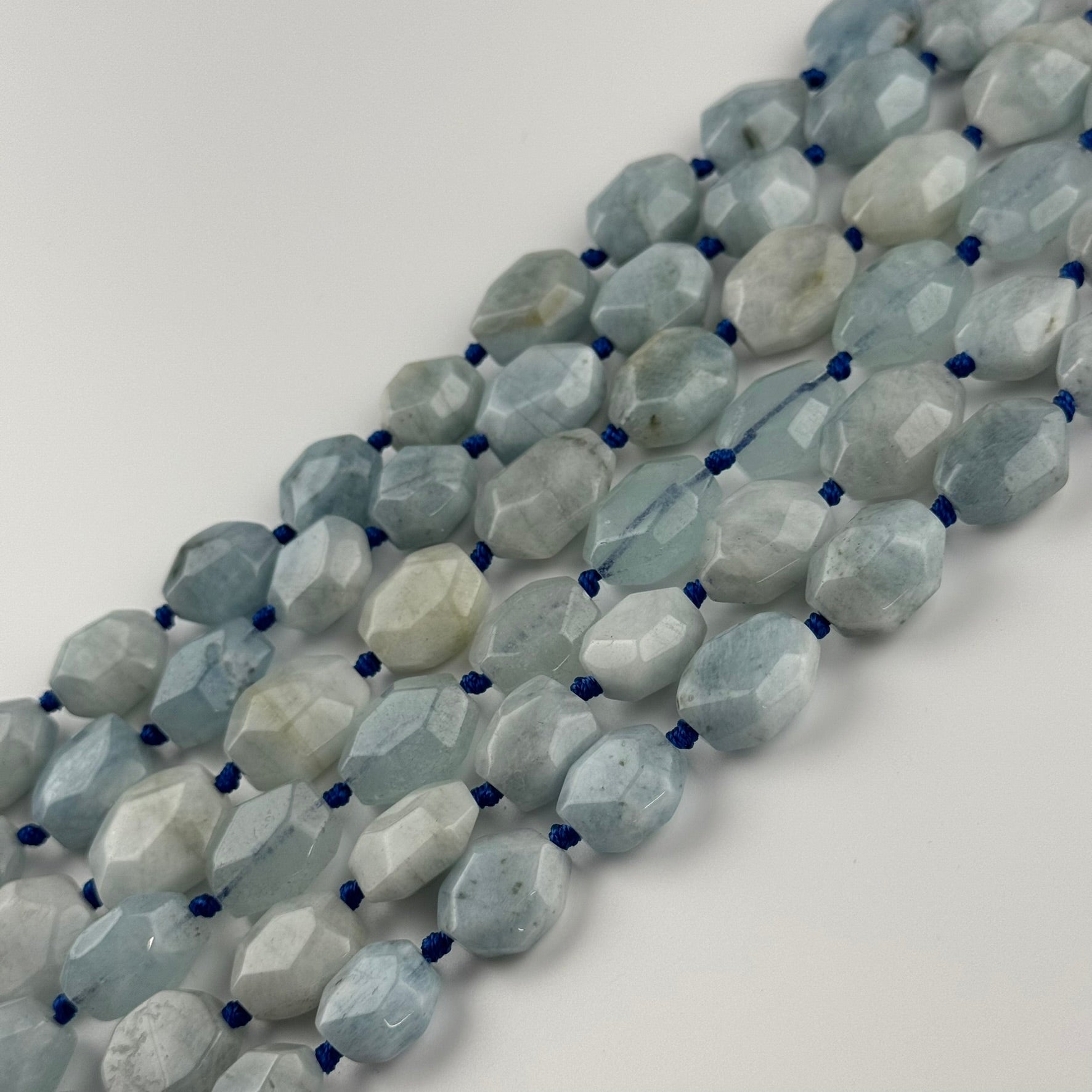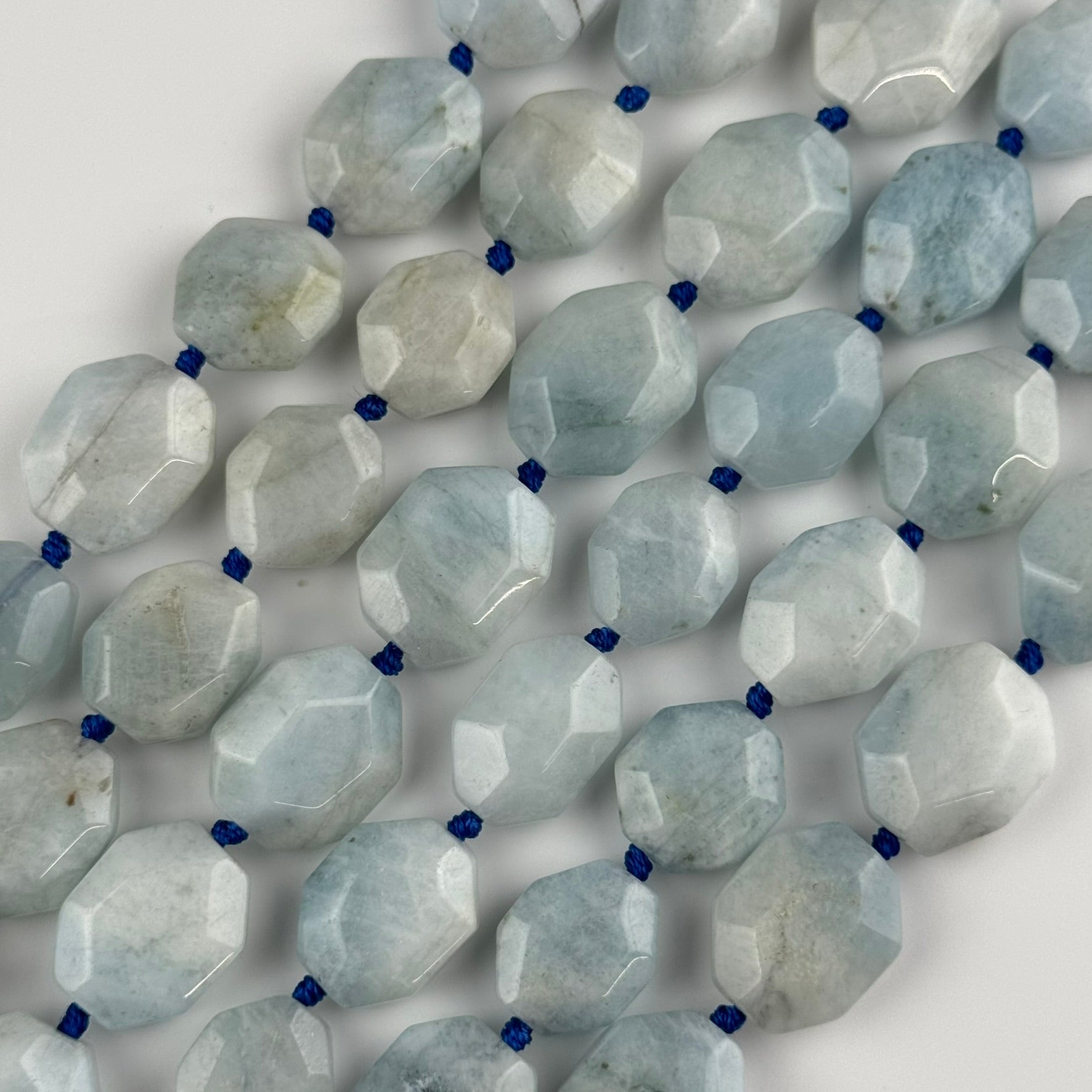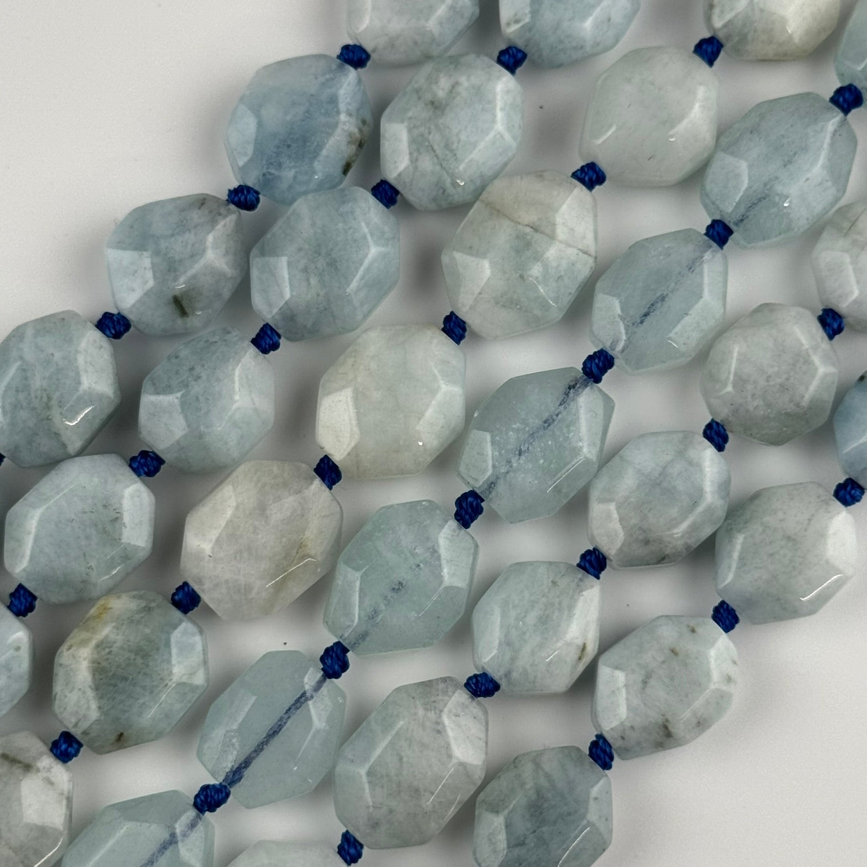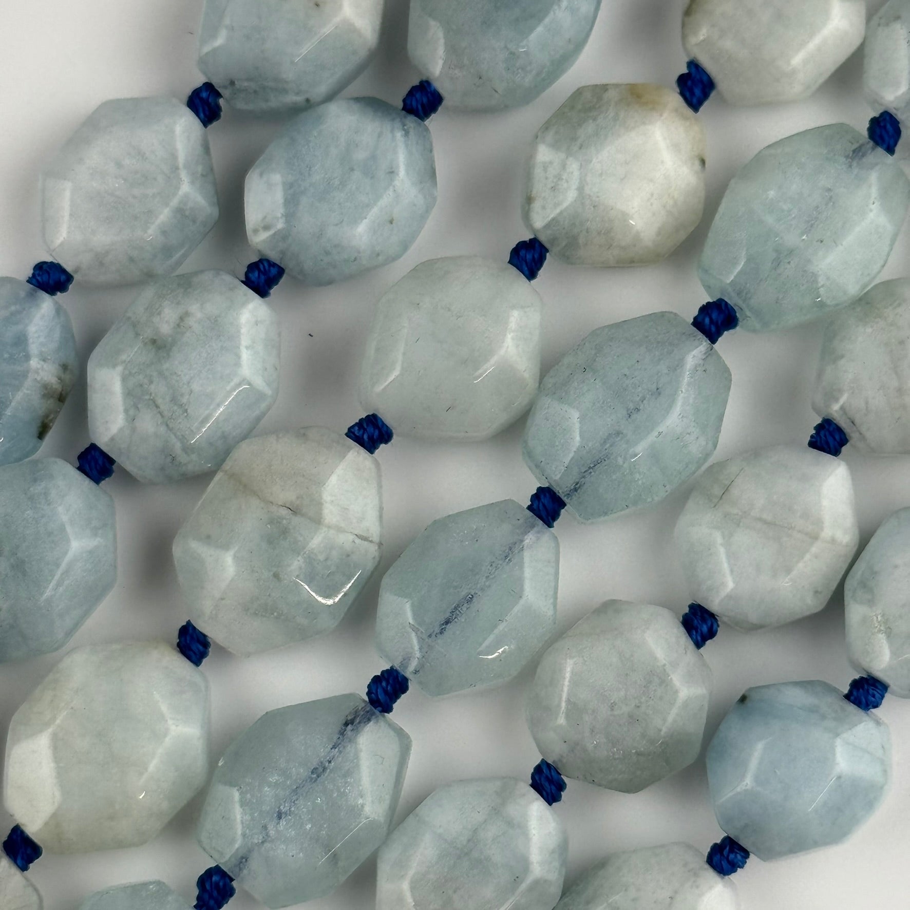 Aquamarine Faceted Hexagonal Shaped Beads - (A Quality)