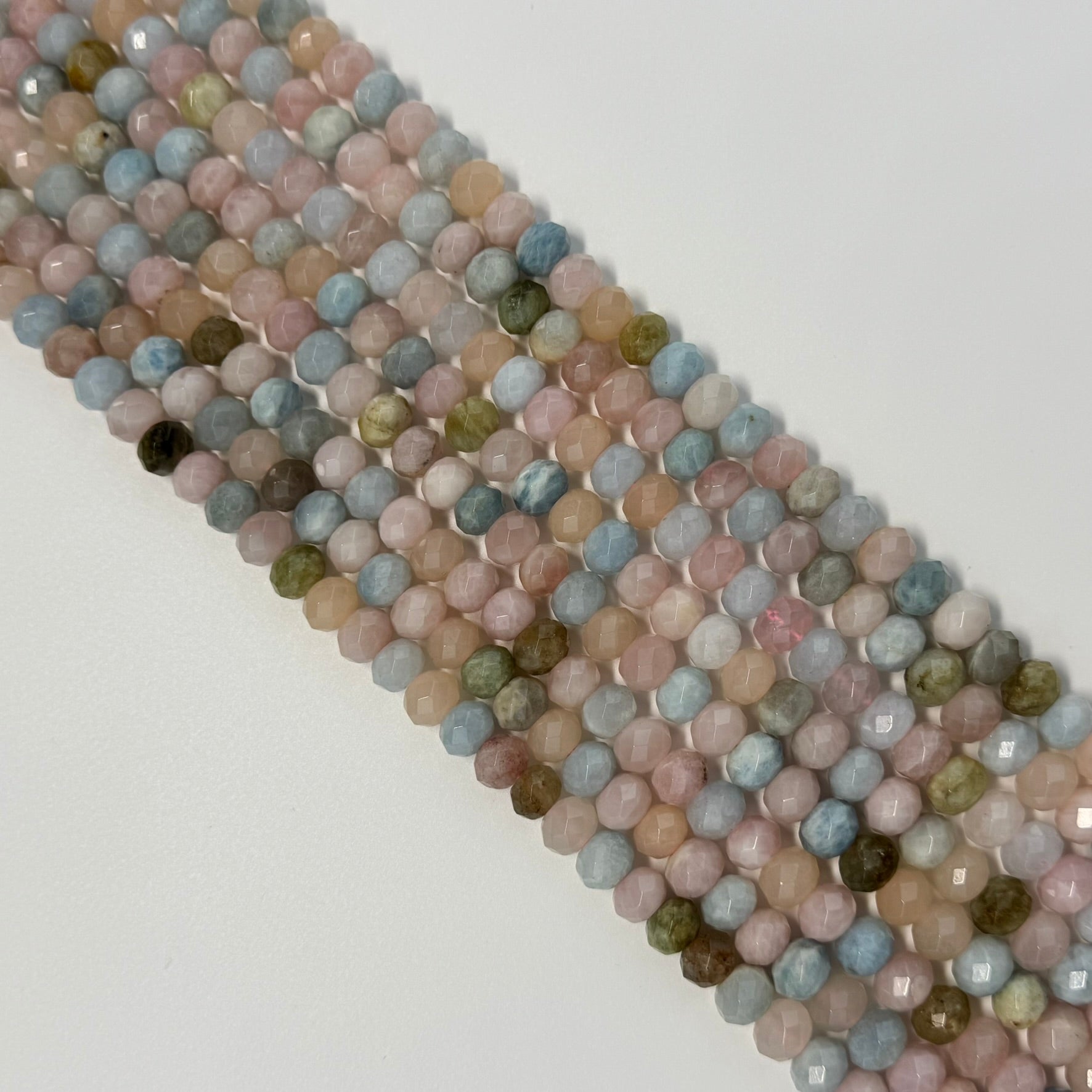 Aquamarine Morganite Faceted Rondelle Beads - (AA Quality)