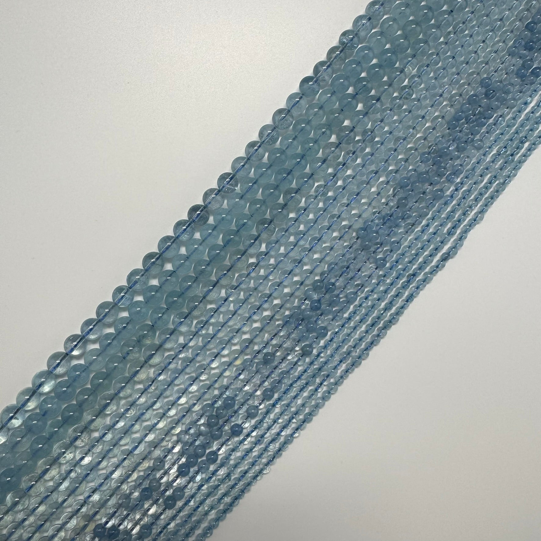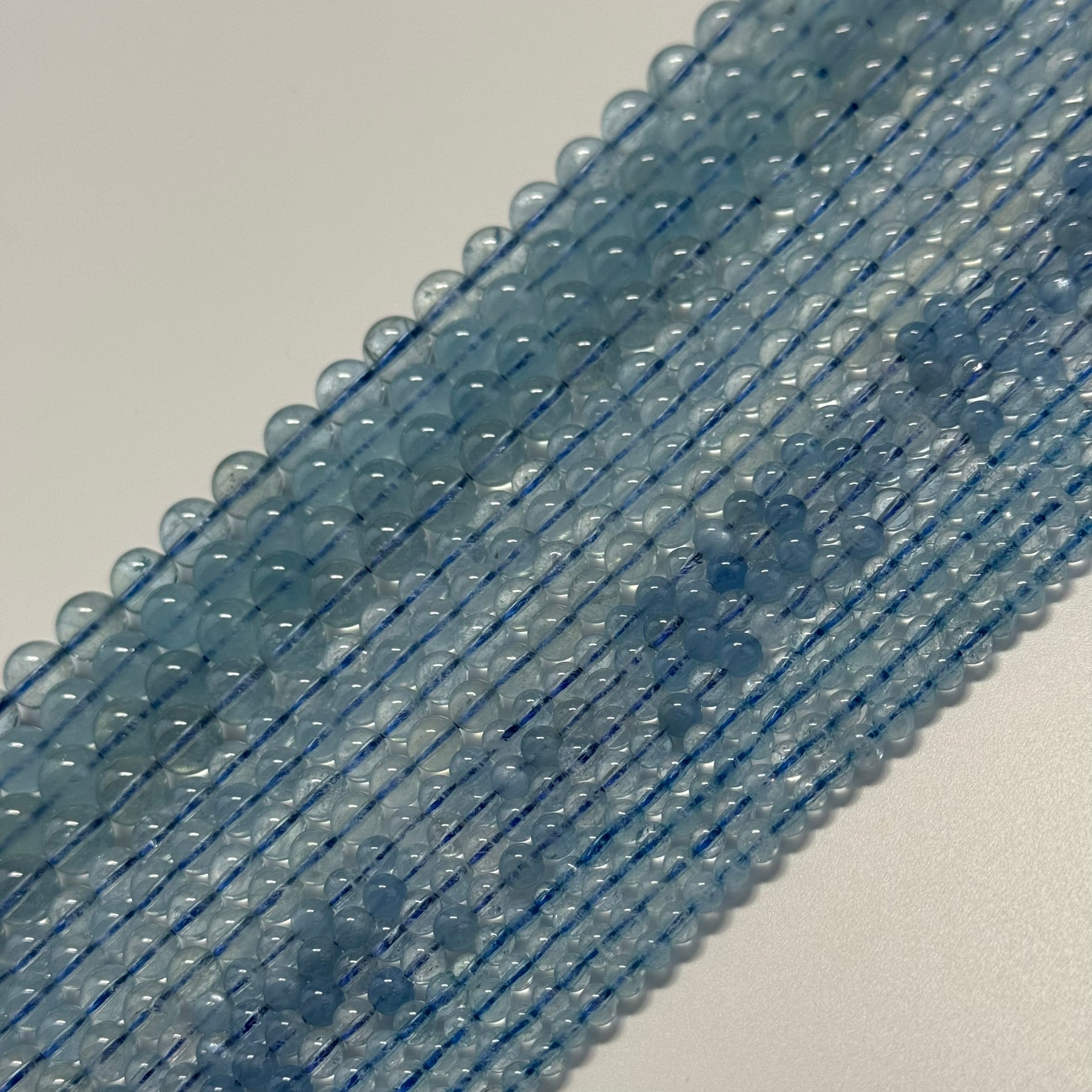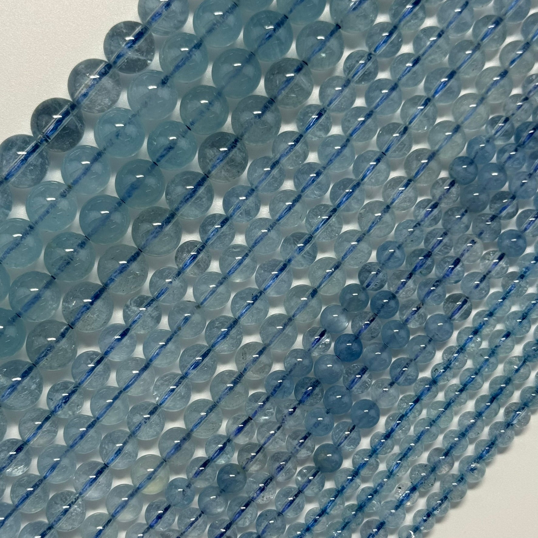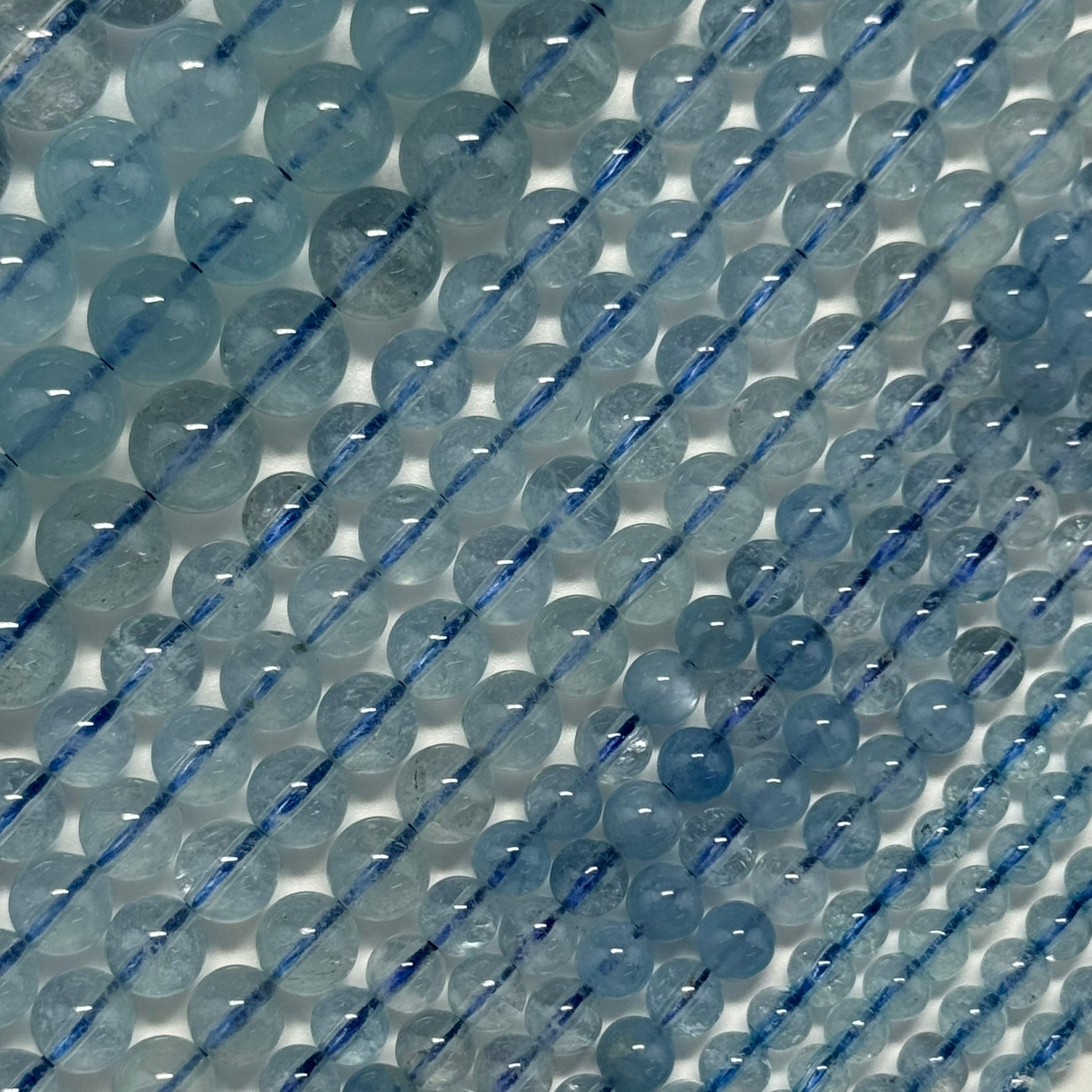 AAAA Quality Aquamarine: Premium-grade beads with consistent vibrant blue tones.