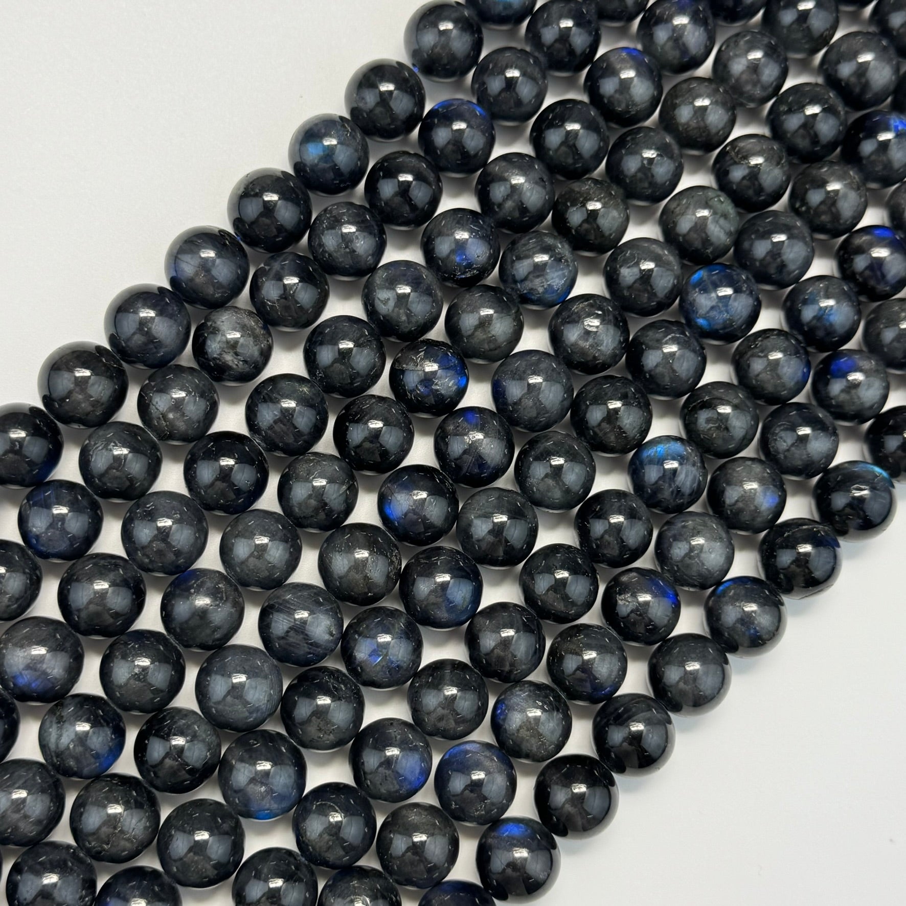 Labradorite Rare Black Polished Round Gemstone Beads (AAAA Quality)