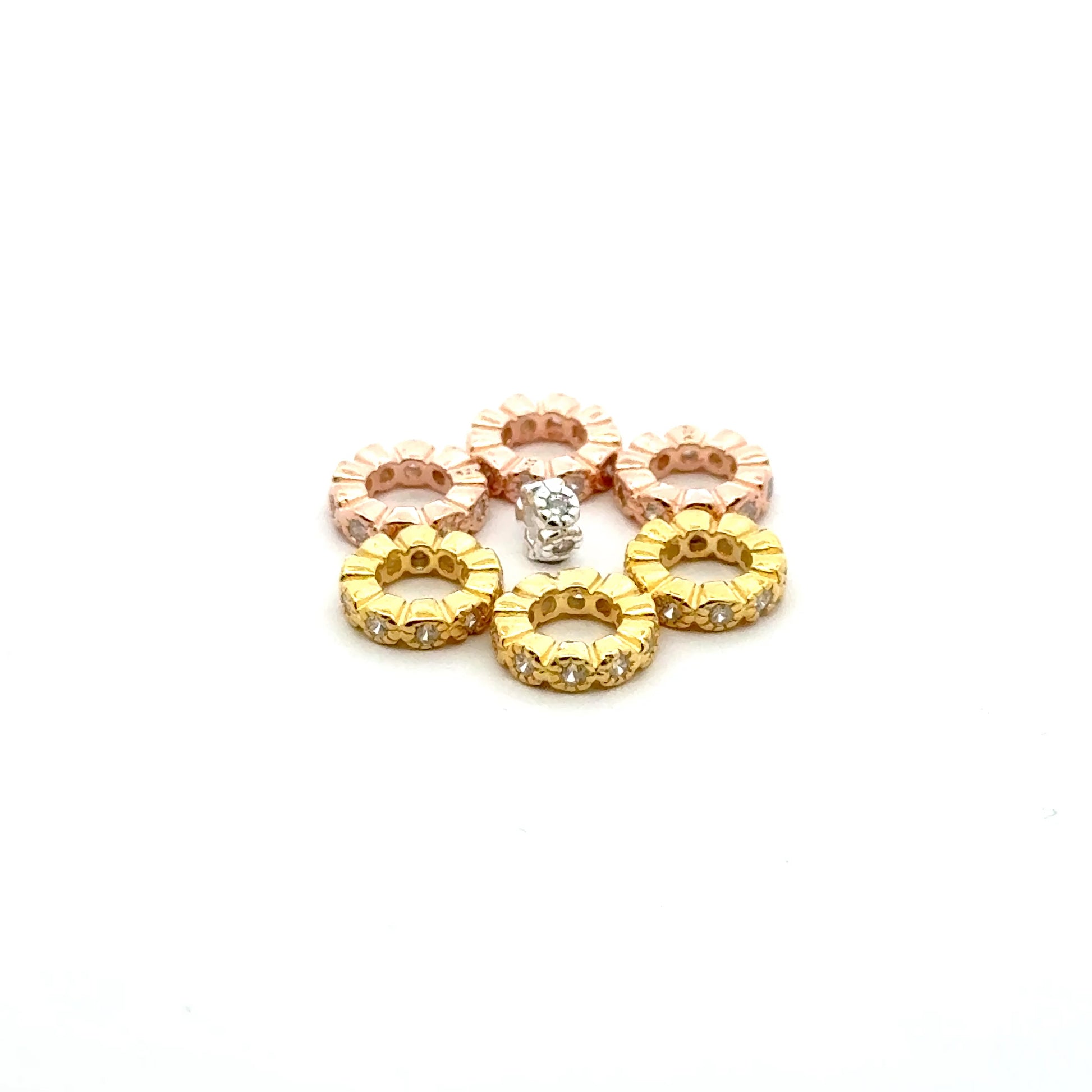 Add a touch of brilliance to your jewelry with this set of 5 925 Sterling Silver Cubic Zirconia Spacers. Each spacer is adorned with sparkling cubic zirconia stones that catch the light beautifully, creating a luxurious accent between beads on bracelets, necklaces, or earrings. Perfect for designs that need a hint of sparkle and sophistication. 💎✨