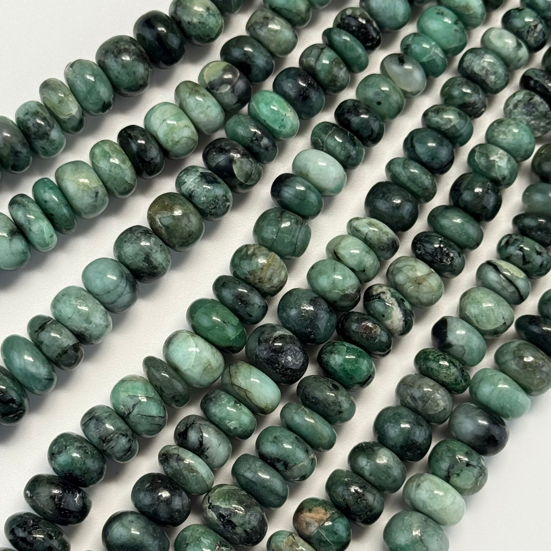 Emerald Polished Rondelle Gemstone Beads (Graduated)