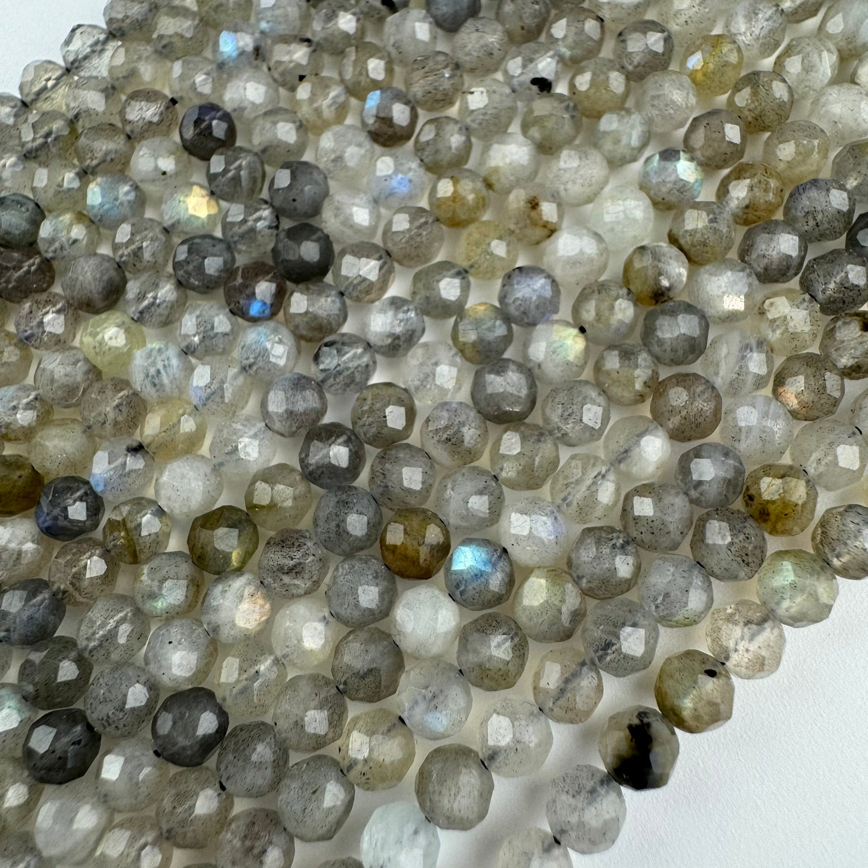 Bring a touch of ethereal beauty to your designs with Labradorite Faceted Round Gemstone Beads (B Quality). These faceted beads exhibit soft flashes of shimmering blue and green, perfect for creating jewelry pieces that captivate with subtle movement and light. Labradorite is celebrated for encouraging self-discovery and creative expression. 🌙💎