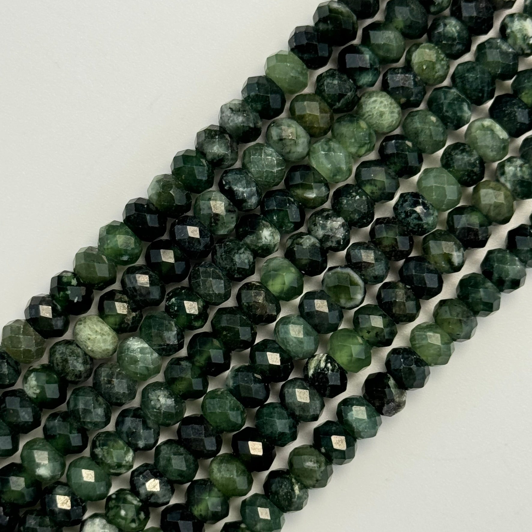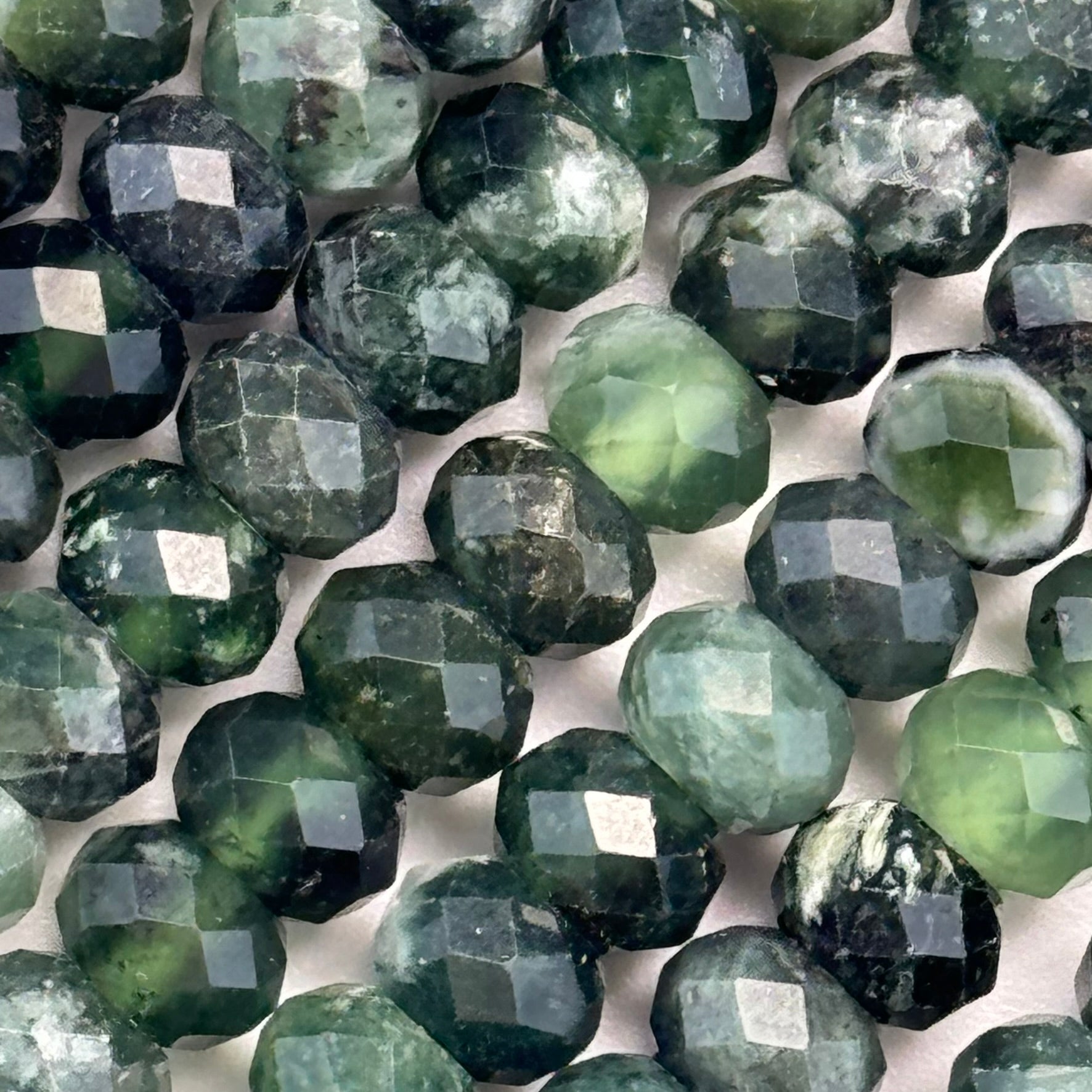 Green Faceted Serpentine Beads - Rondelle Beads are a must-have for any jewelry maker or designer. These beads are made of high-quality glass and feature a unique, faceted design that catches the light and adds a touch of elegance to any piece. The serpentine shape is both durable and versatile, allowing for endless creative possibilities when it comes to jewelry design. With their smooth, polished finish, these beads are easy to string and work well with a variety of findings and closures. Whether you're creating statement pieces or intricate designs, Green Faceted Serpentine Beads - Rondelle Beads are the perfect addition to any jewelry collection.