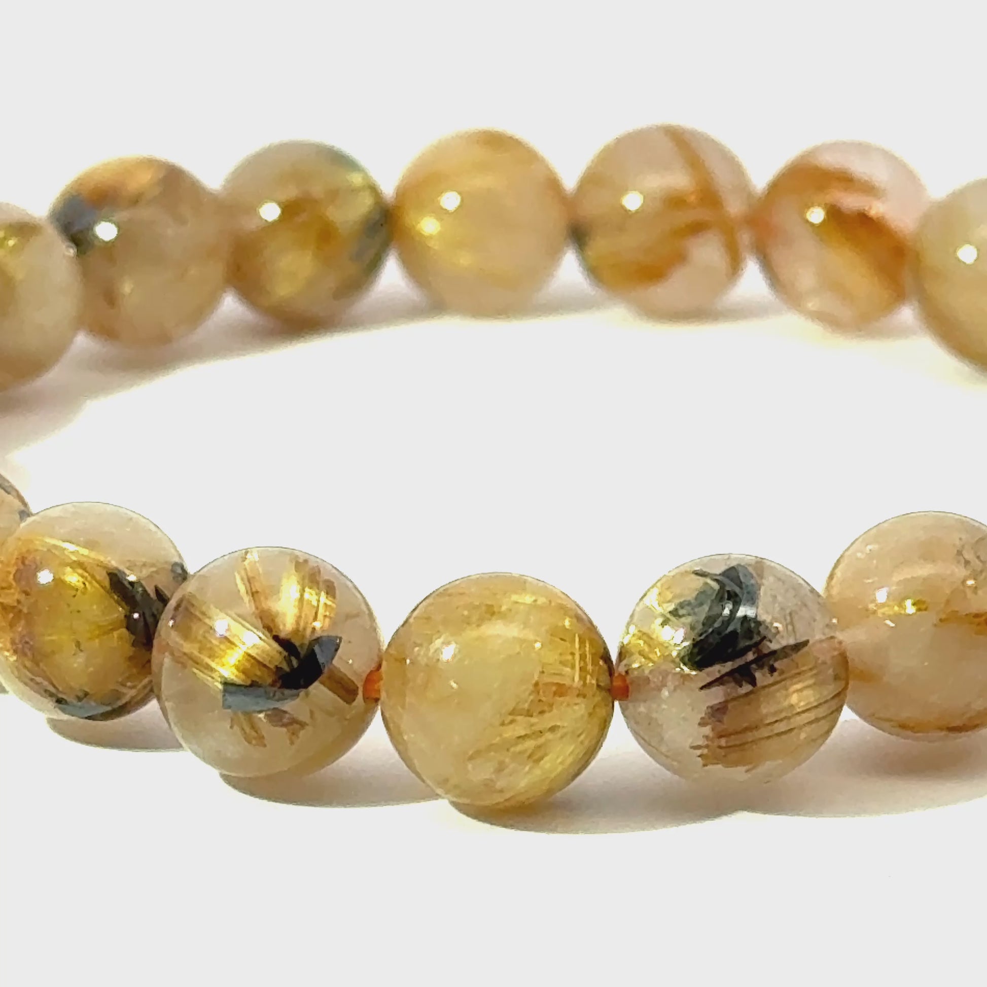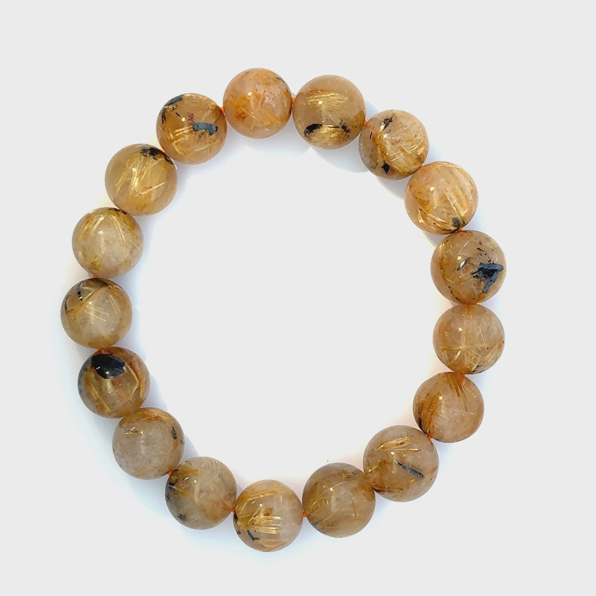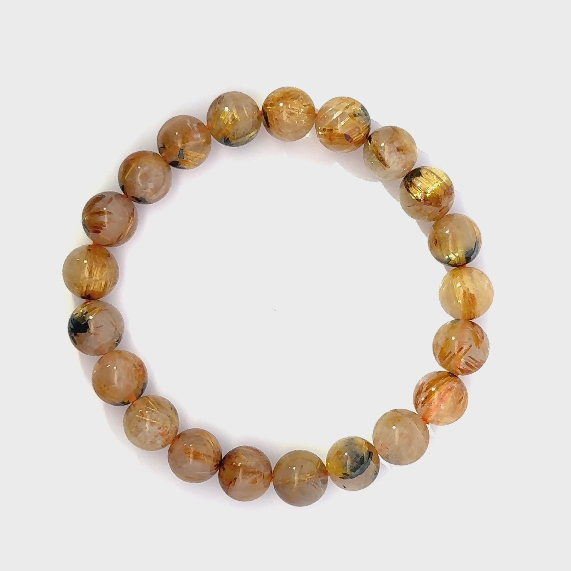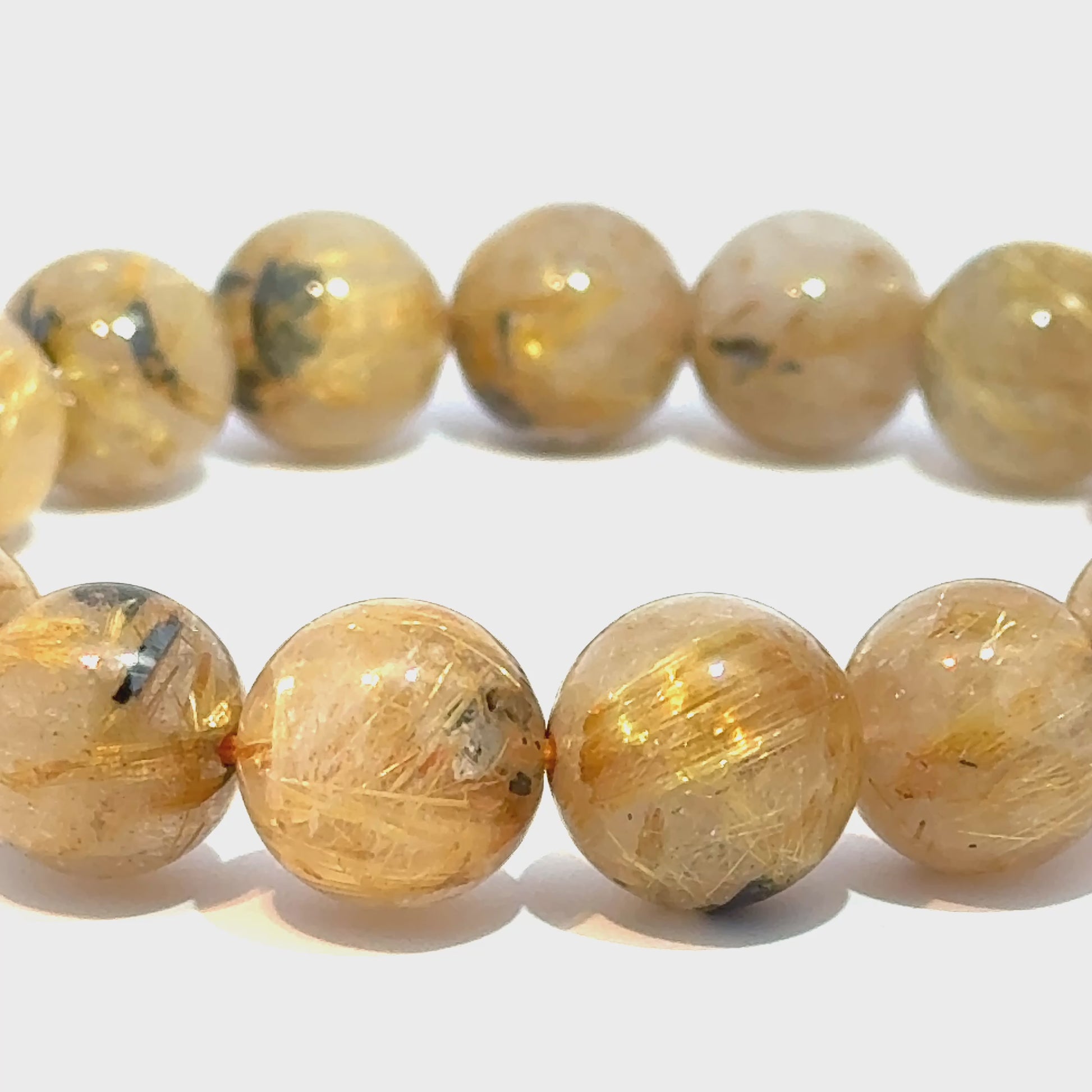 Bracelet: Golden Rutilated With Hemitite Bracelet