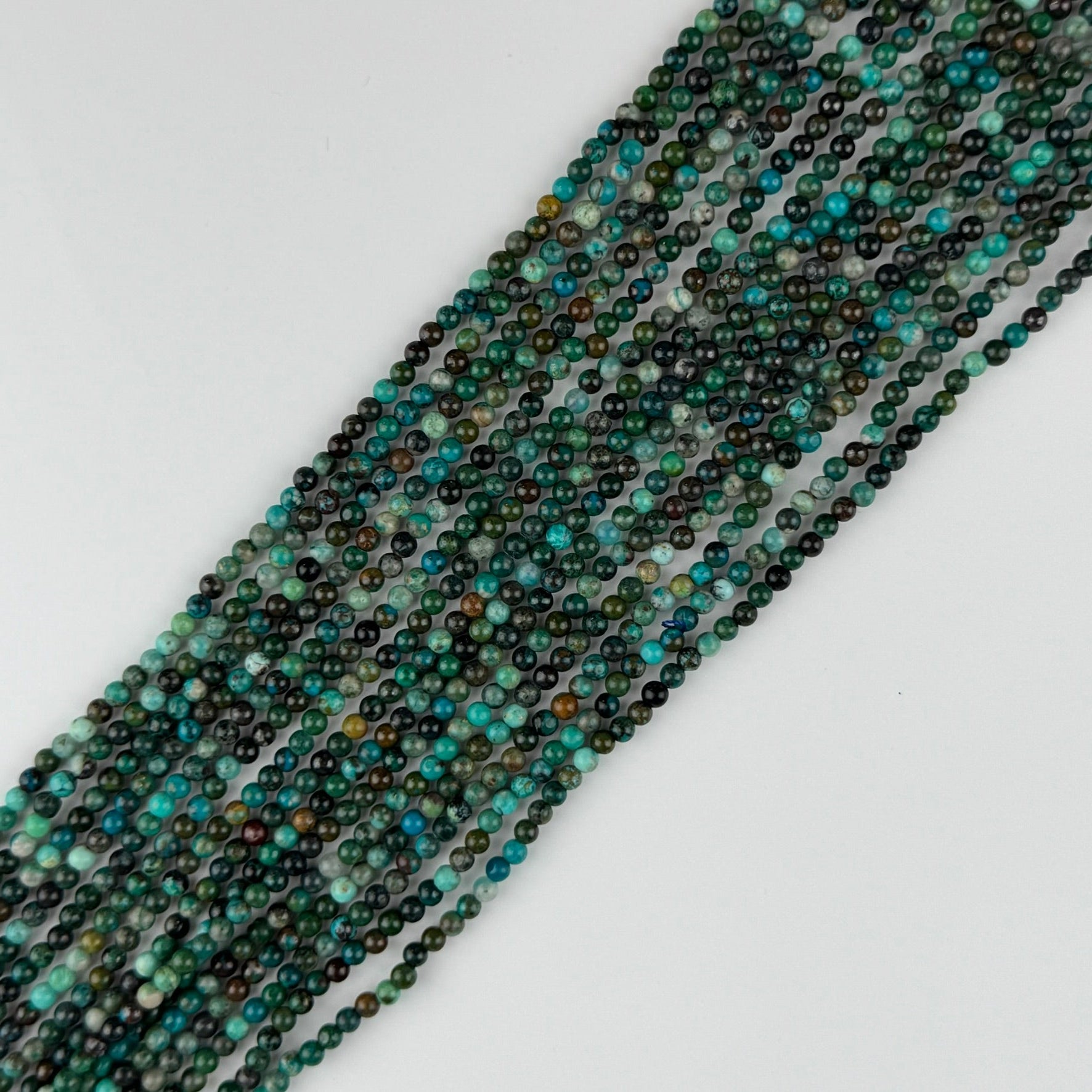 Green Chrysocolla Beads - Polished Round: Elegant and versatile, these polished round beads are made from high-quality green chrysocolla, a semi-precious stone known for its soothing properties and rich, emerald hue. Perfect for jewelry makers and designers looking to create unique pieces that exude sophistication and style, these beads feature a smooth, polished finish that catches the light perfectly. Whether you're crafting statement pieces or delicate accessories, these beads are sure to make your designs stand out. With their durable construction and timeless appeal, they are an excellent addition to any jewelry-making collection.