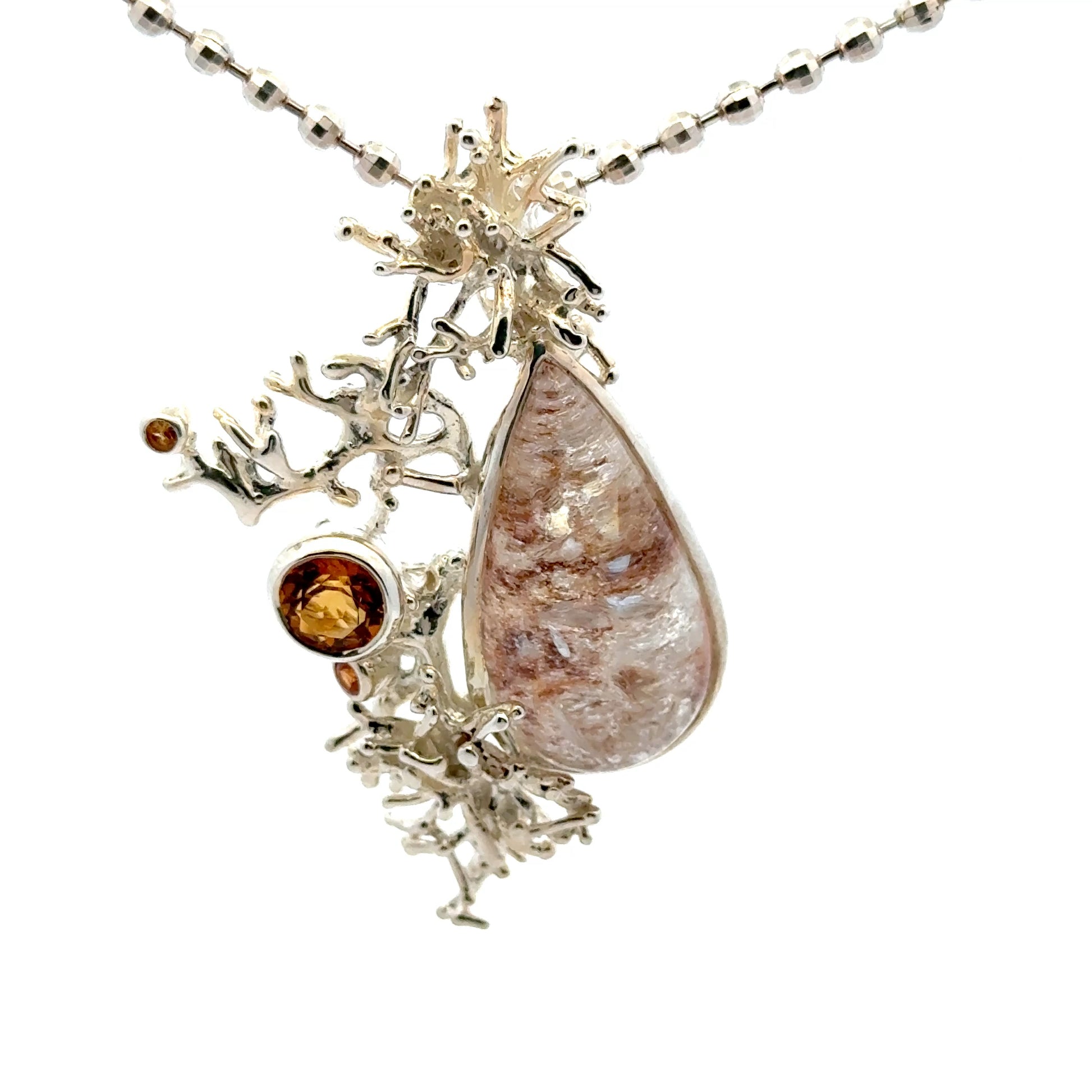 Handmade Garden Quartz Coral Reef Pendant with Citrine & Yellow Sapphires