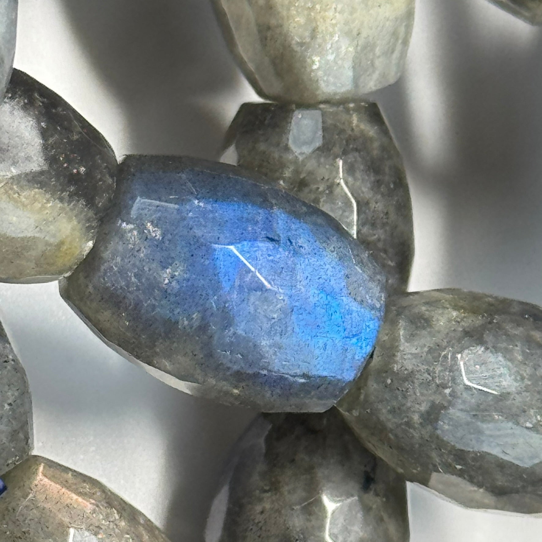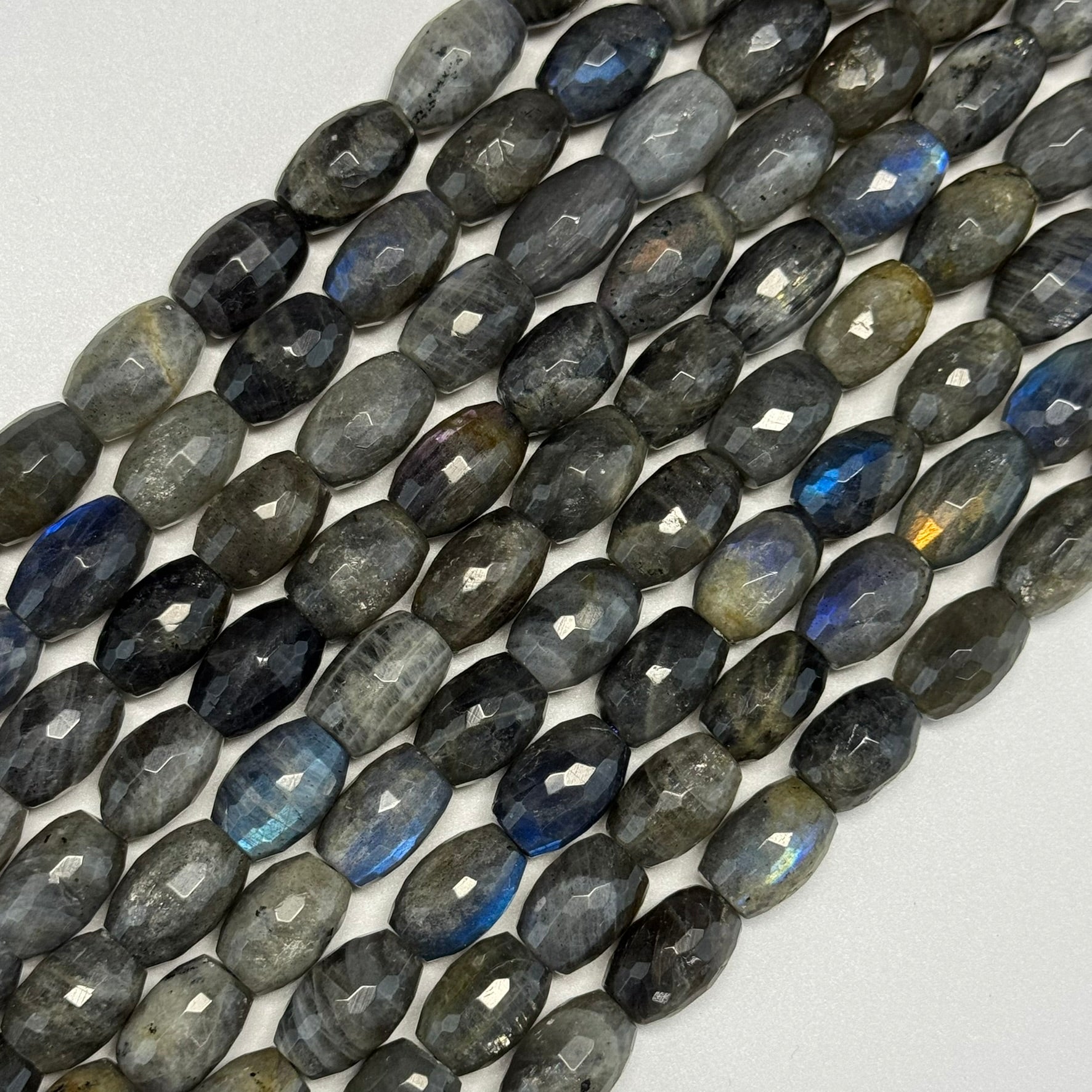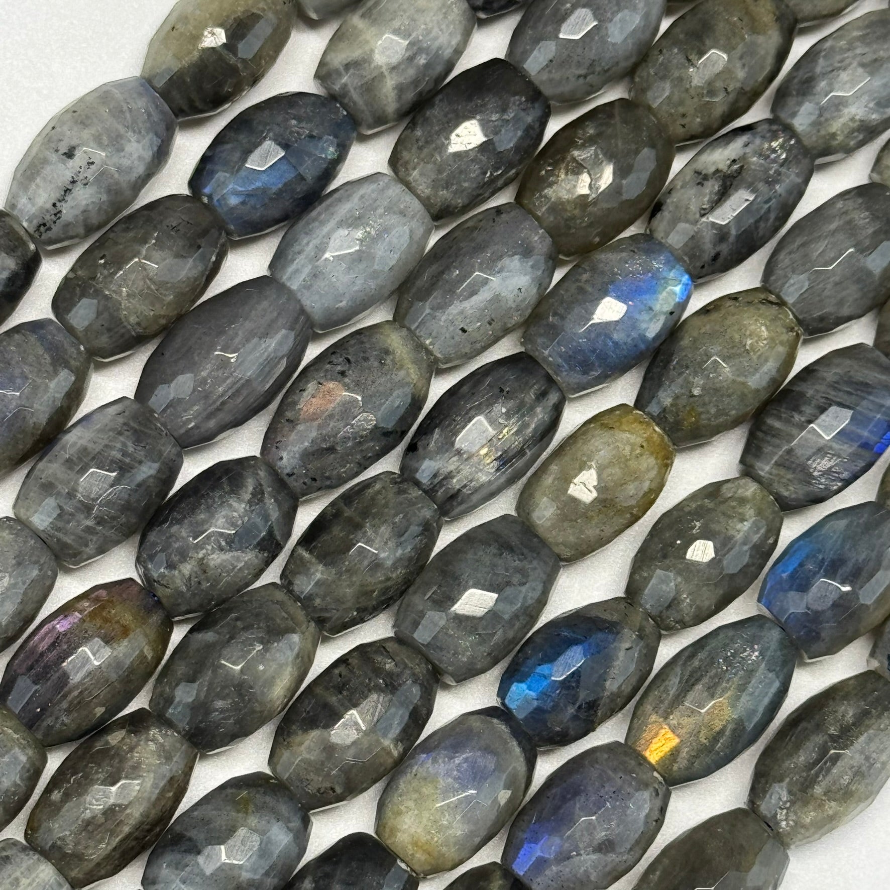 Elevate your jewelry creations with Labradorite Faceted Barrel-Shaped Gemstone Beads (Quality). These uniquely shaped barrel beads feature shimmering flashes of blue and green labradorescence, adding dimension and sparkle to bracelets, necklaces, earrings, and artisan designs. Labradorite is known for enhancing intuition and inspiring creativity. 🌌💫