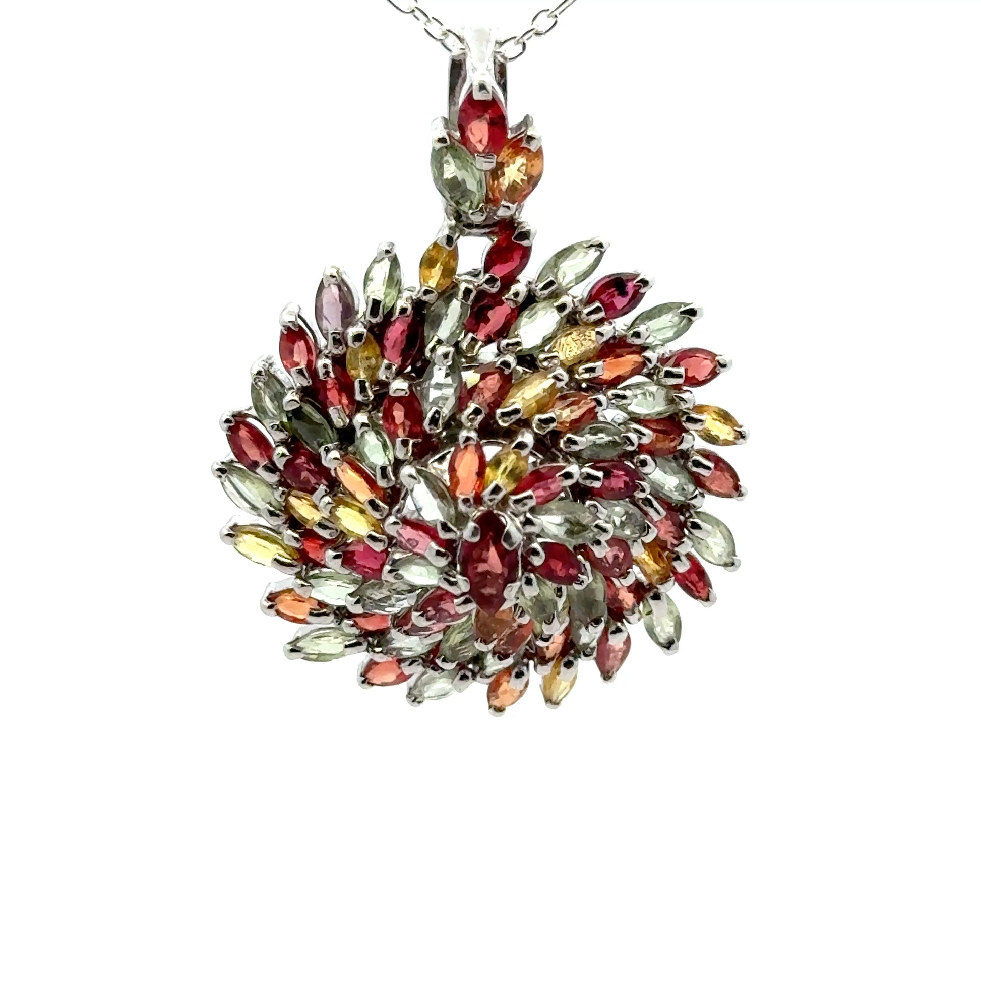 Multicolor Sapphires Pendant & Brooch in 925 Sterling Silver