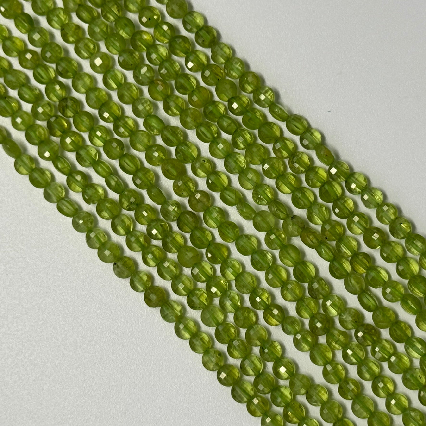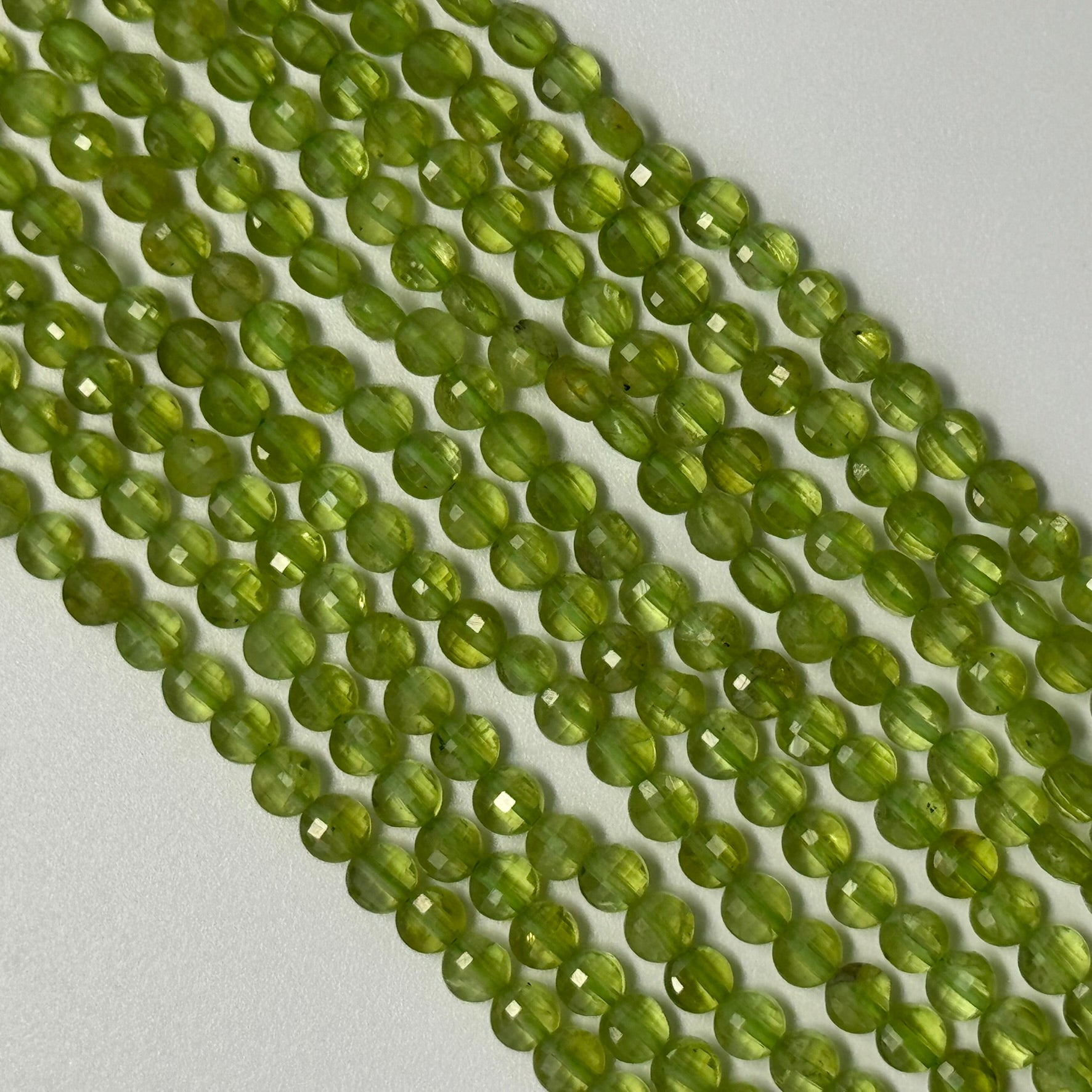 Peridot Lentil Faceted Gemstone Beads