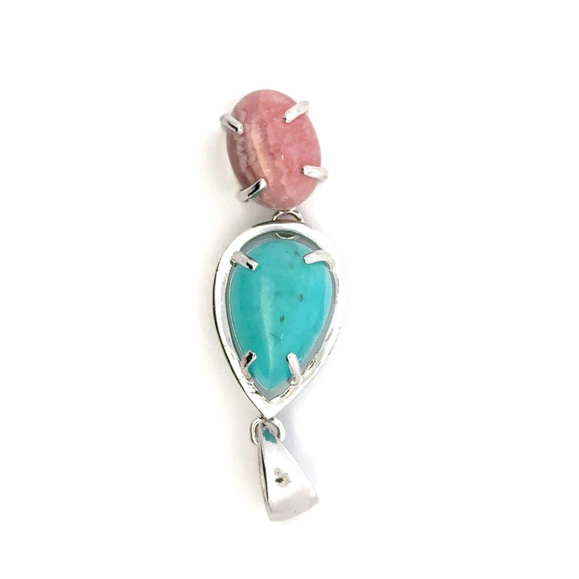 Peruvian AAAA Amazonite Pendant – 925 Sterling Silver with Round Pearl Amazonite & Oval Rhodochrosite