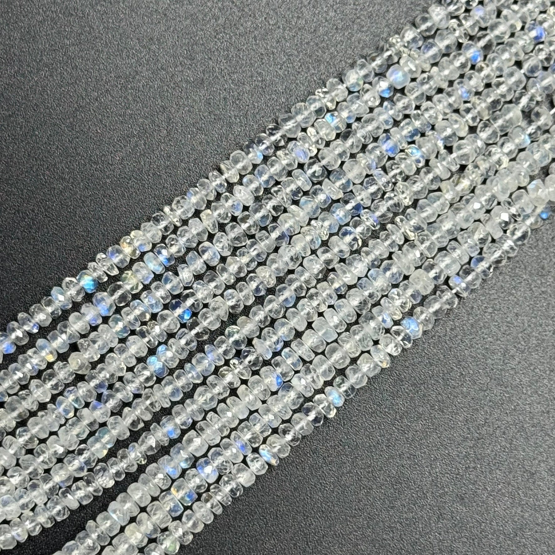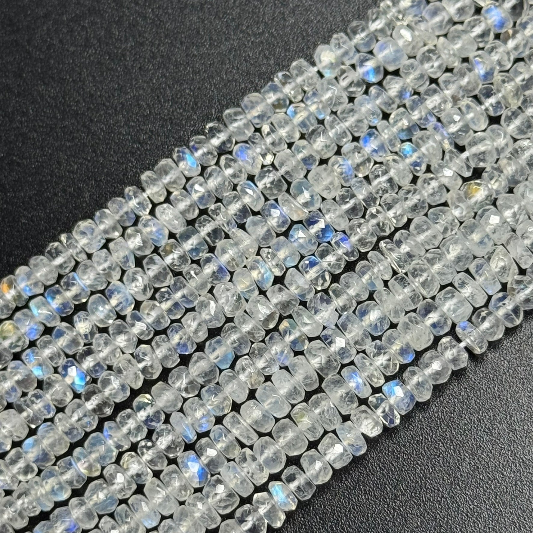 Rainbow Moonstone Faceted Rondelle Beads - (AAAAA Quality)
