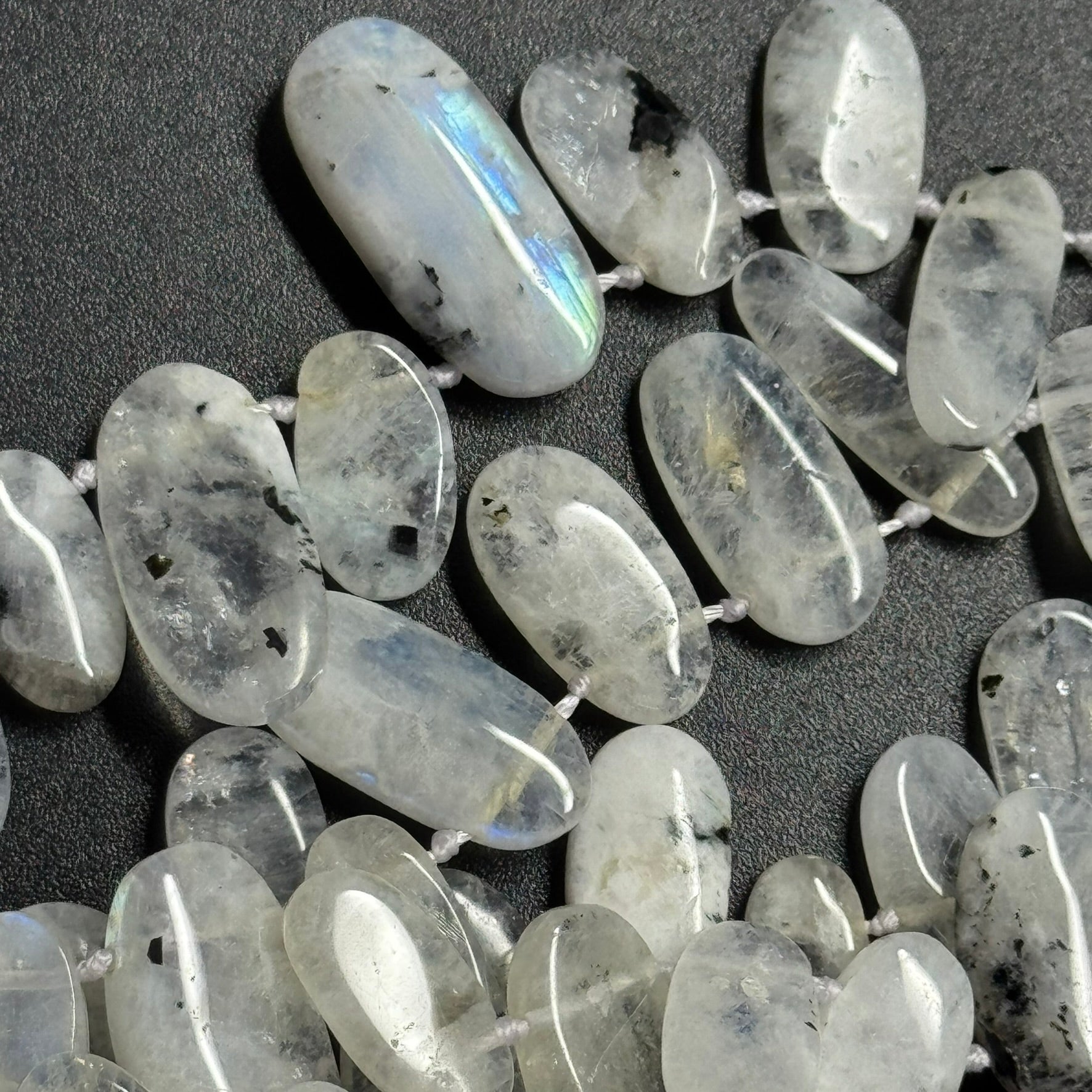 Rainbow Moonstone Oval Side Drilled Beads - (AB Quality)
