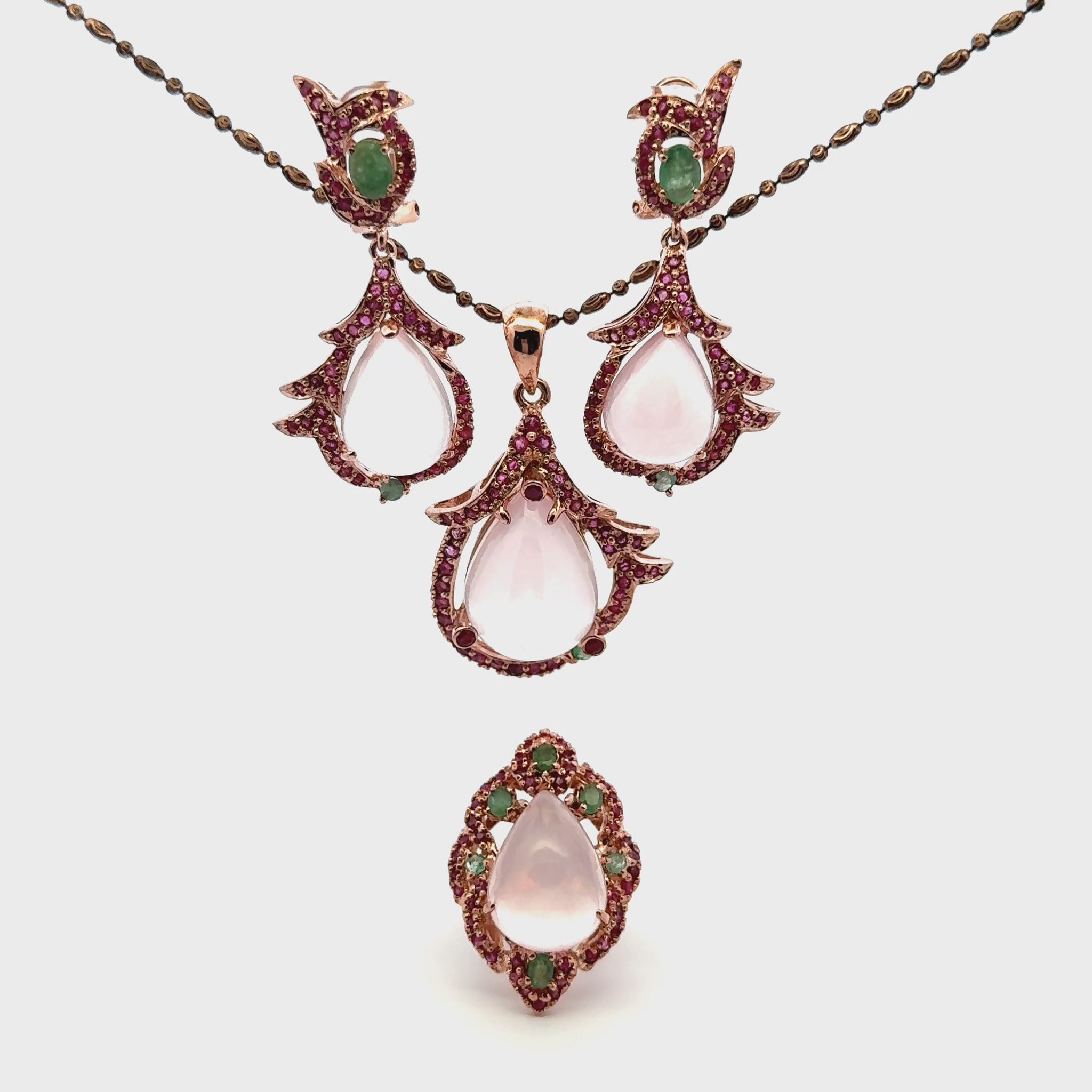 Ruby, Emerald, Star Rose Quartz, 925 Sterling Silver, Rose Gold Plated