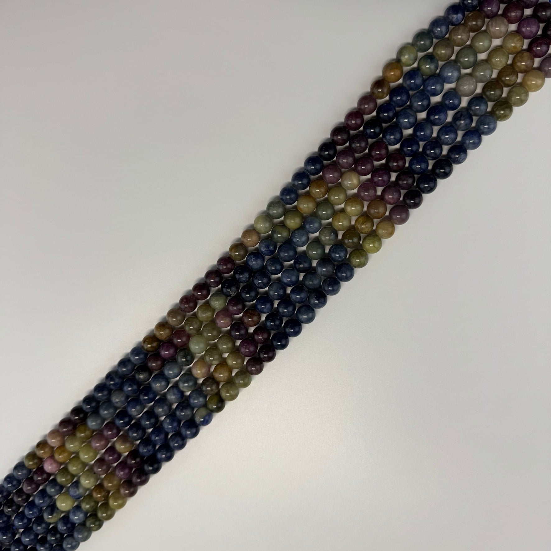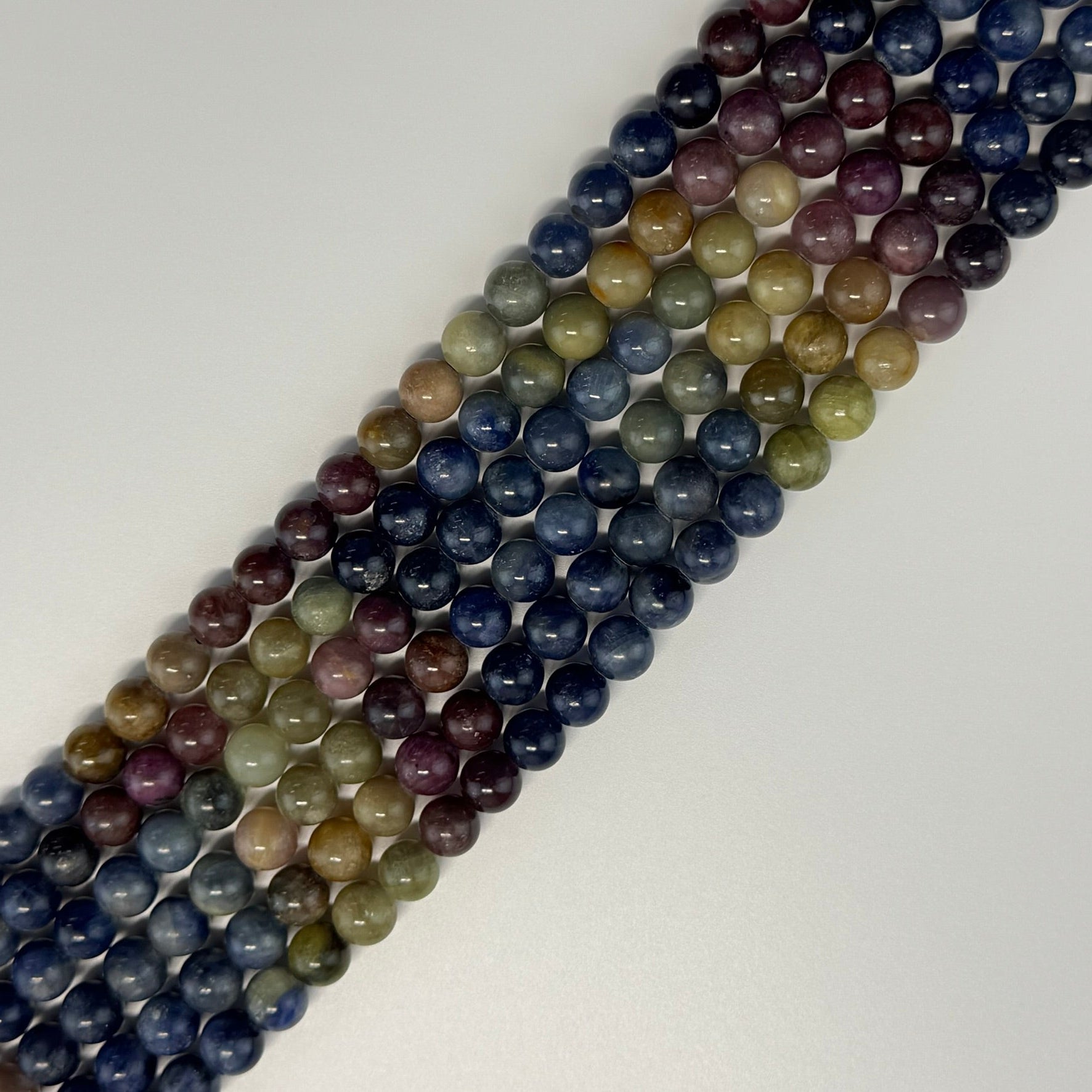 Ruby Sapphire Multi Colour Polished Round Beads - (AA Quality)
