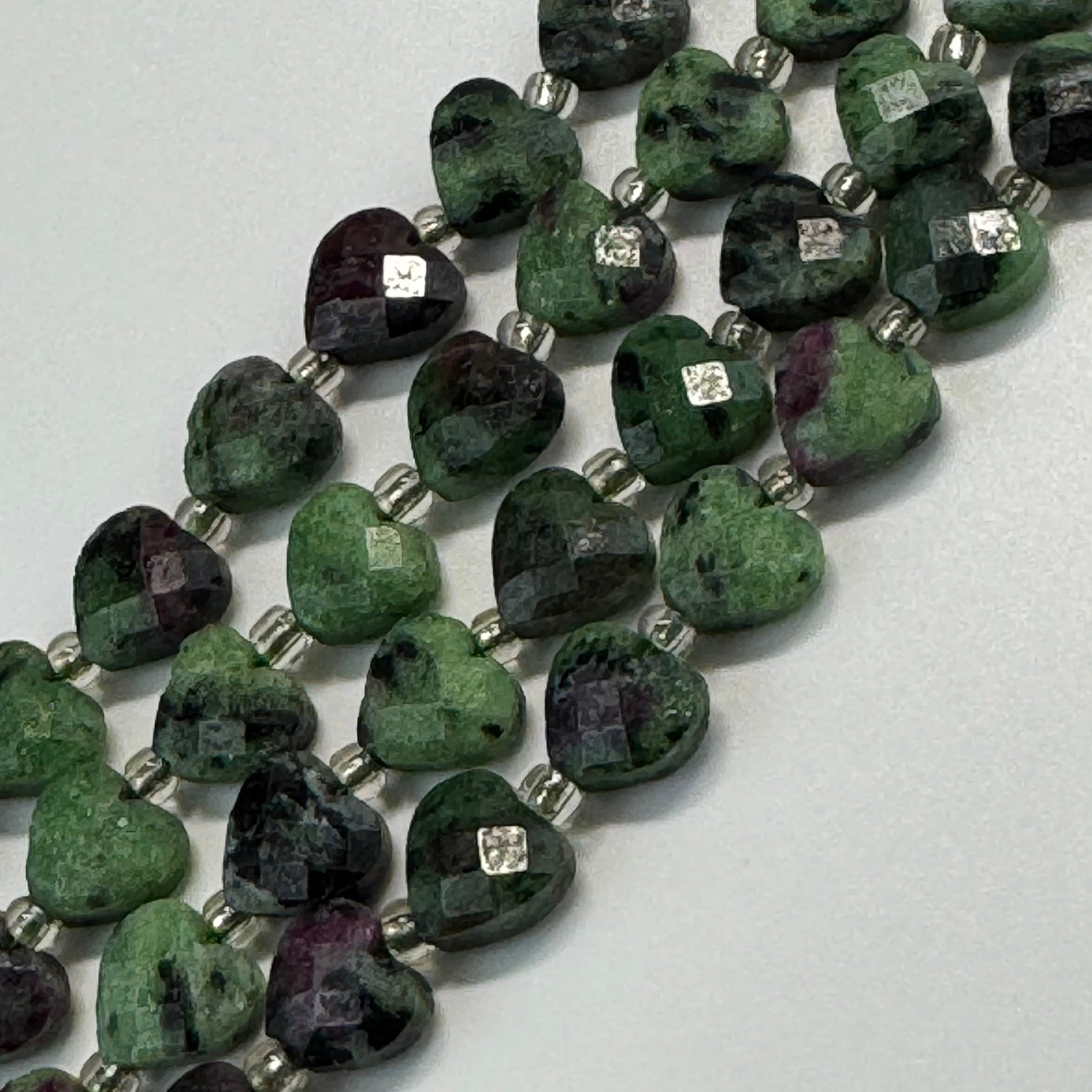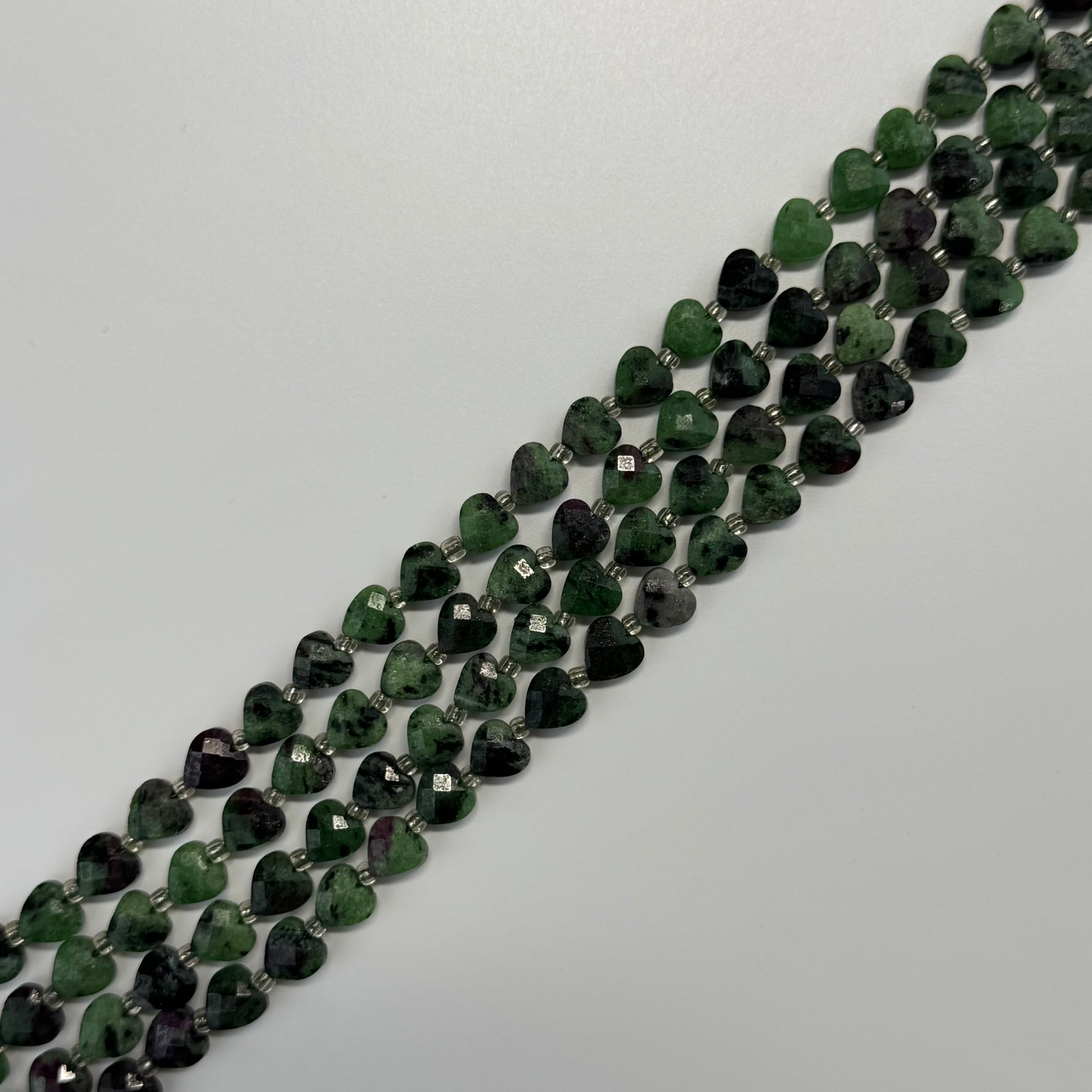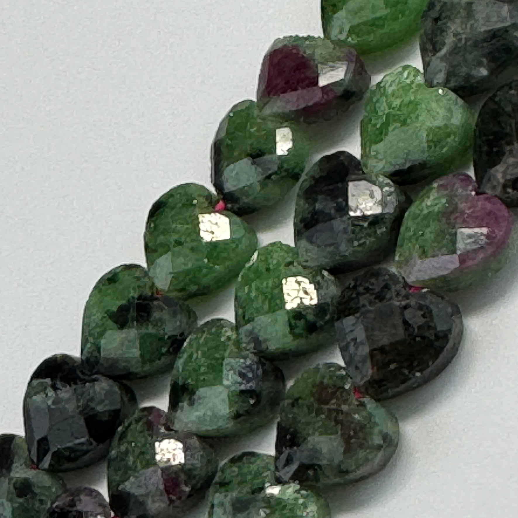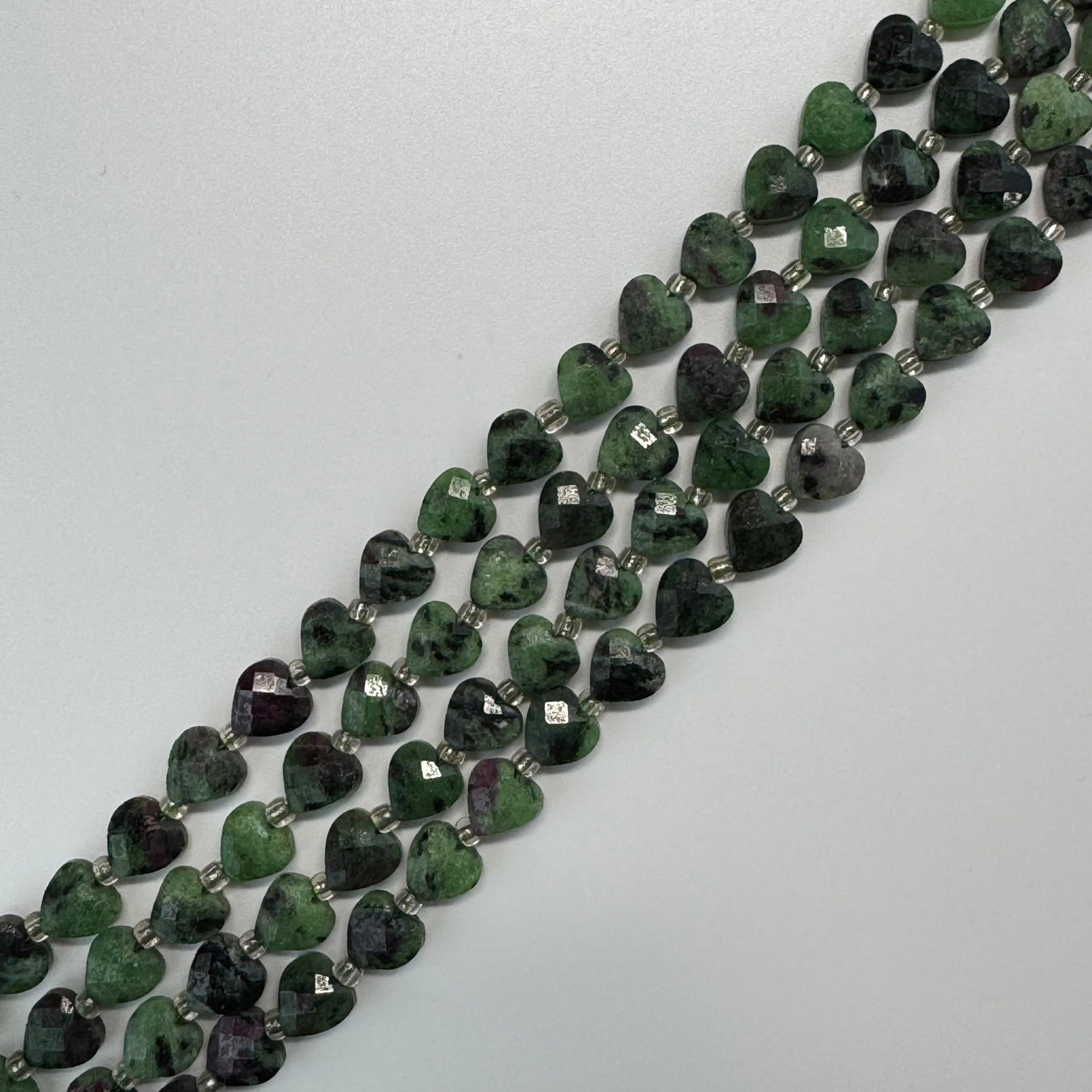 Ruby Zoisite Faceted Heart Shaped Beads - (AA Quality)