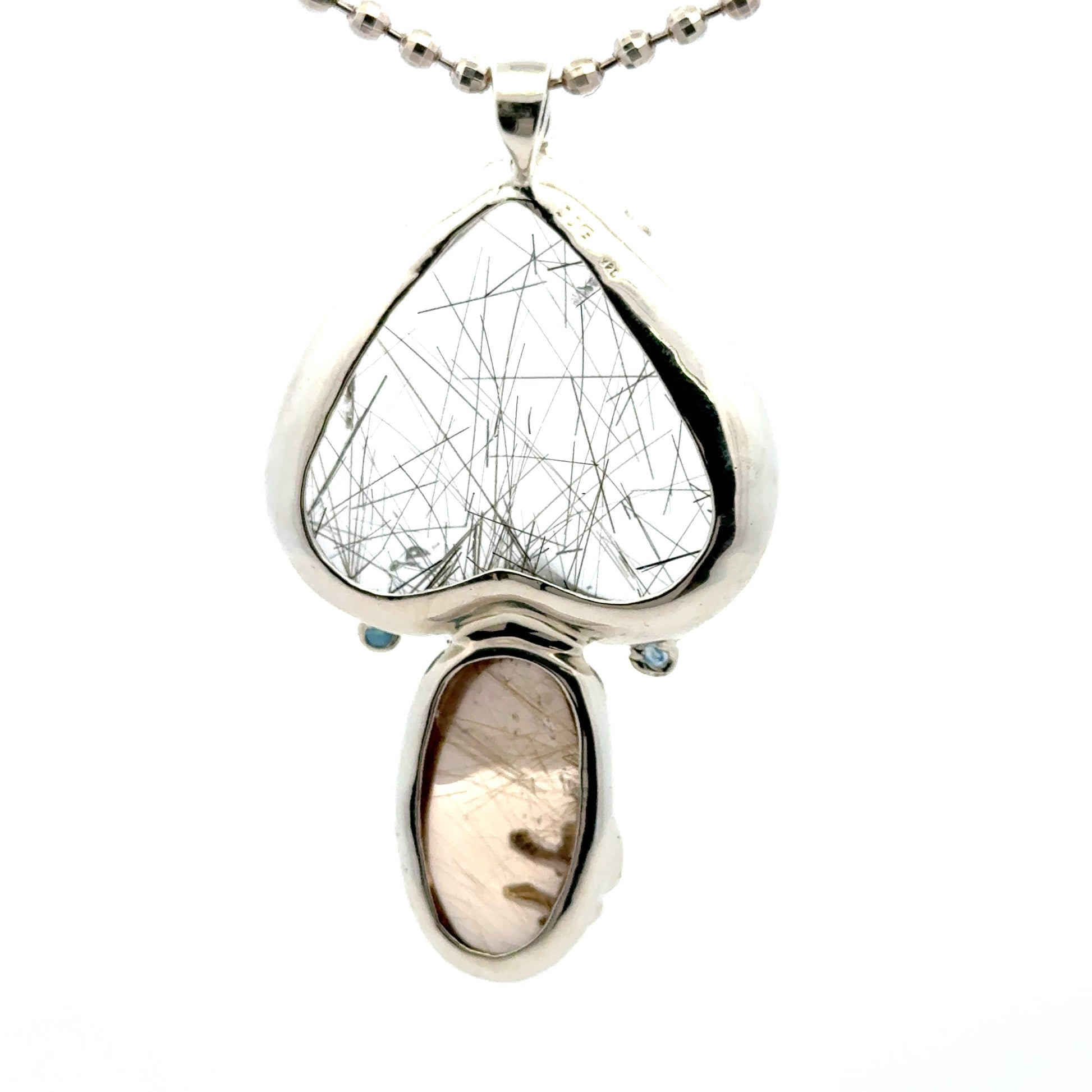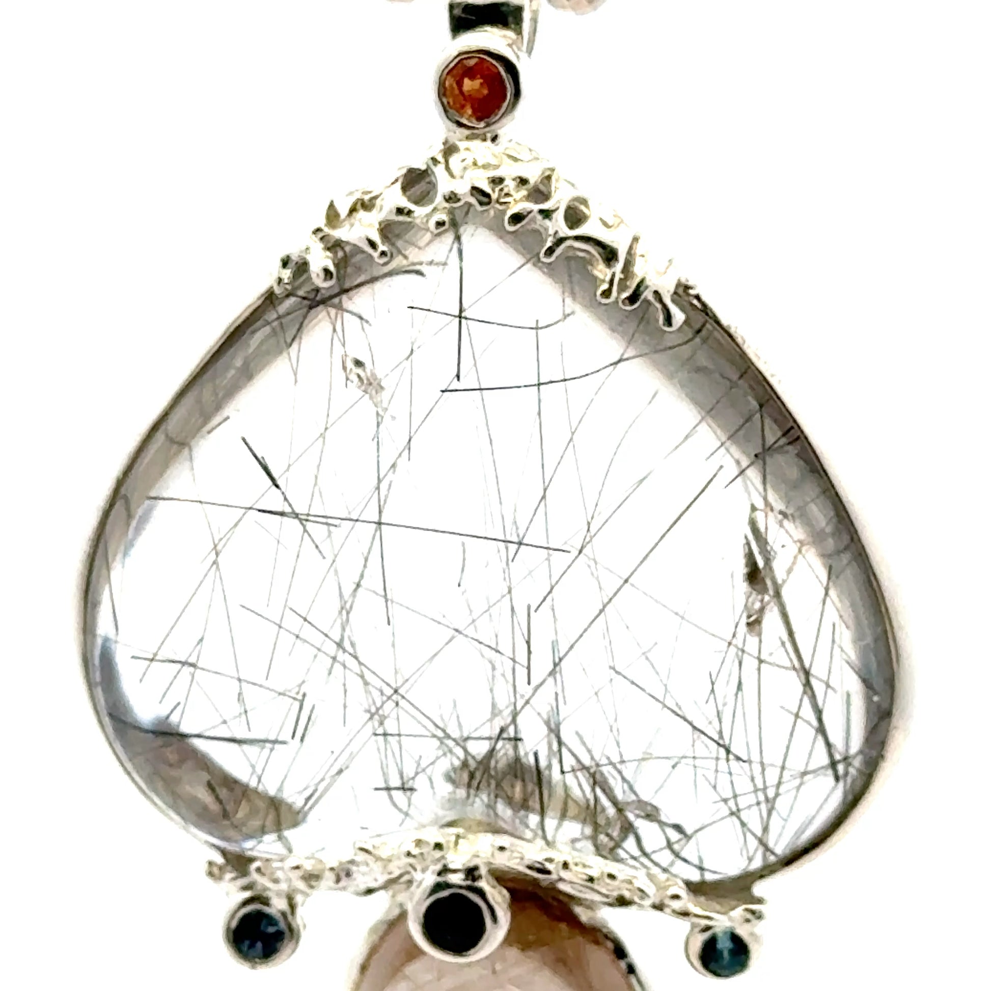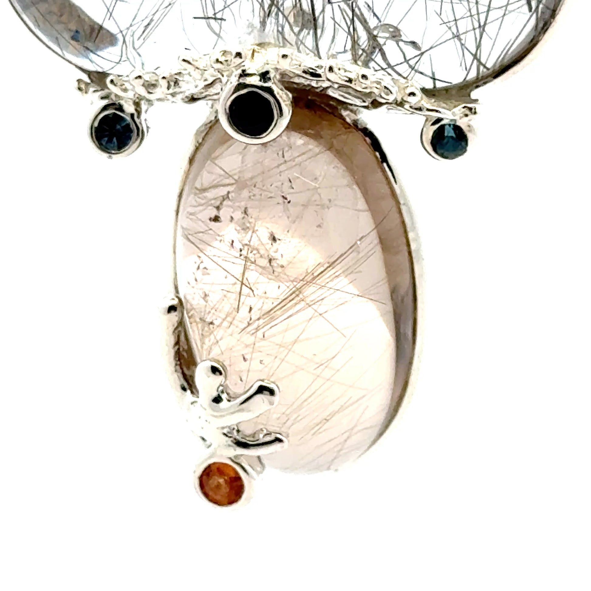 Rutilated Quartz Coral Reef Pendant with Blue & Orange Sapphire,Quartz & Citrine