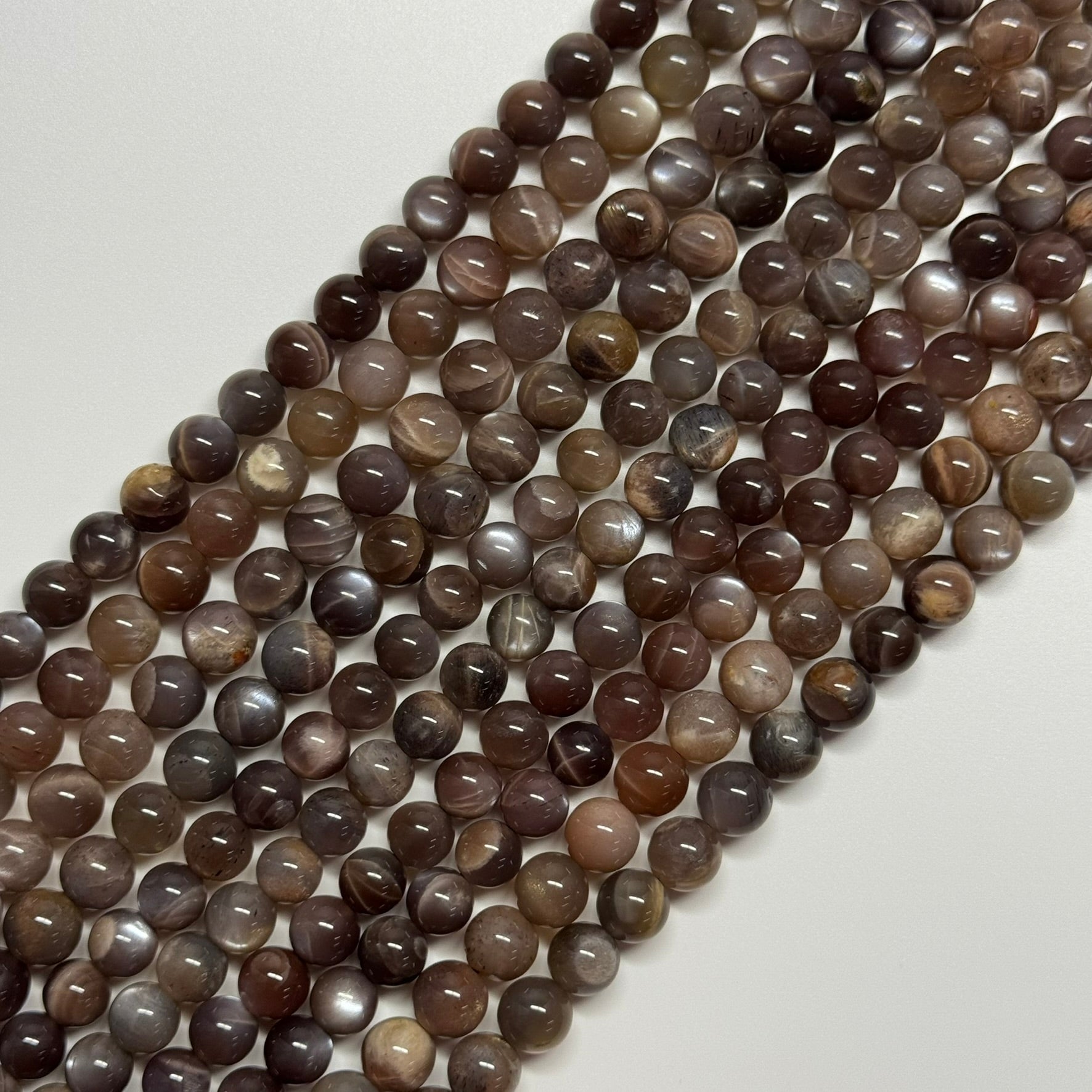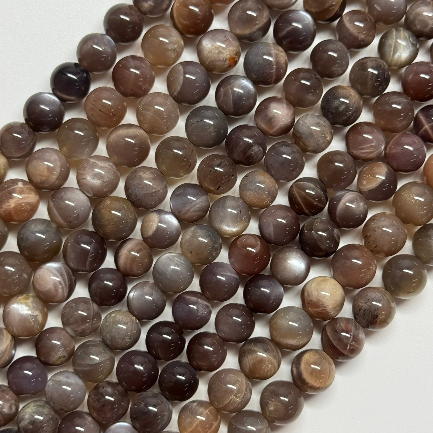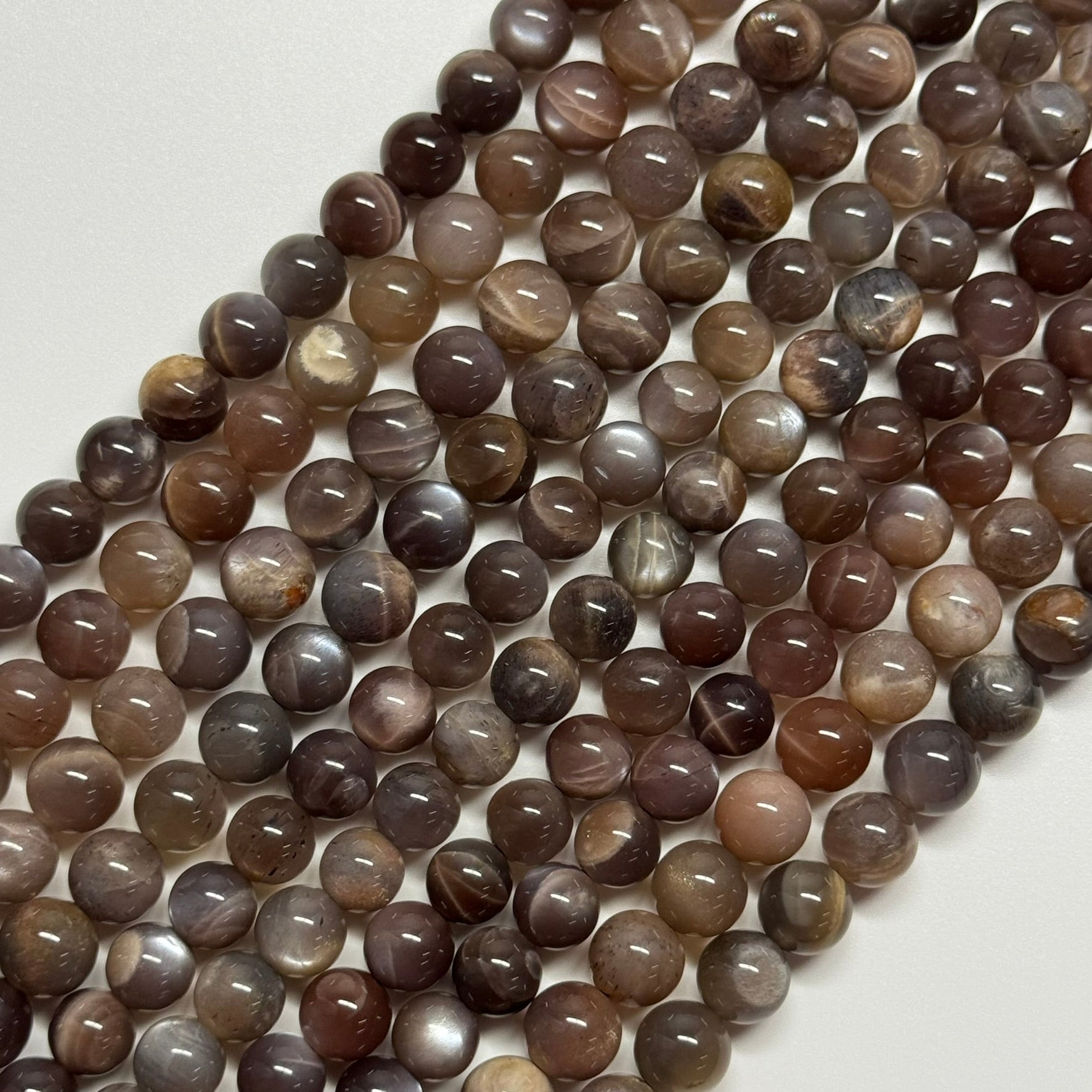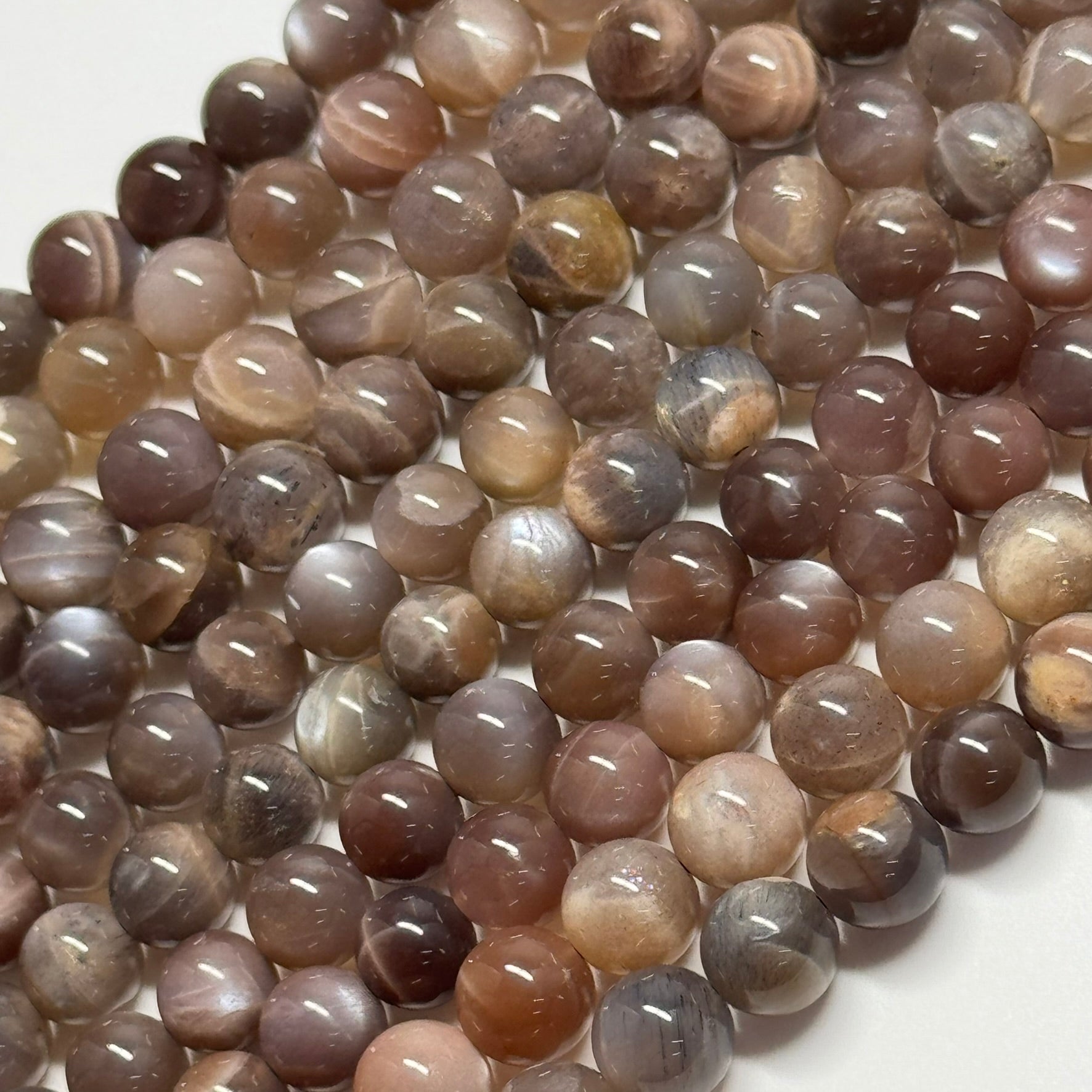 Sunstone & Moonstone Chocolate Pink Polished Round Beads - (A Quality)