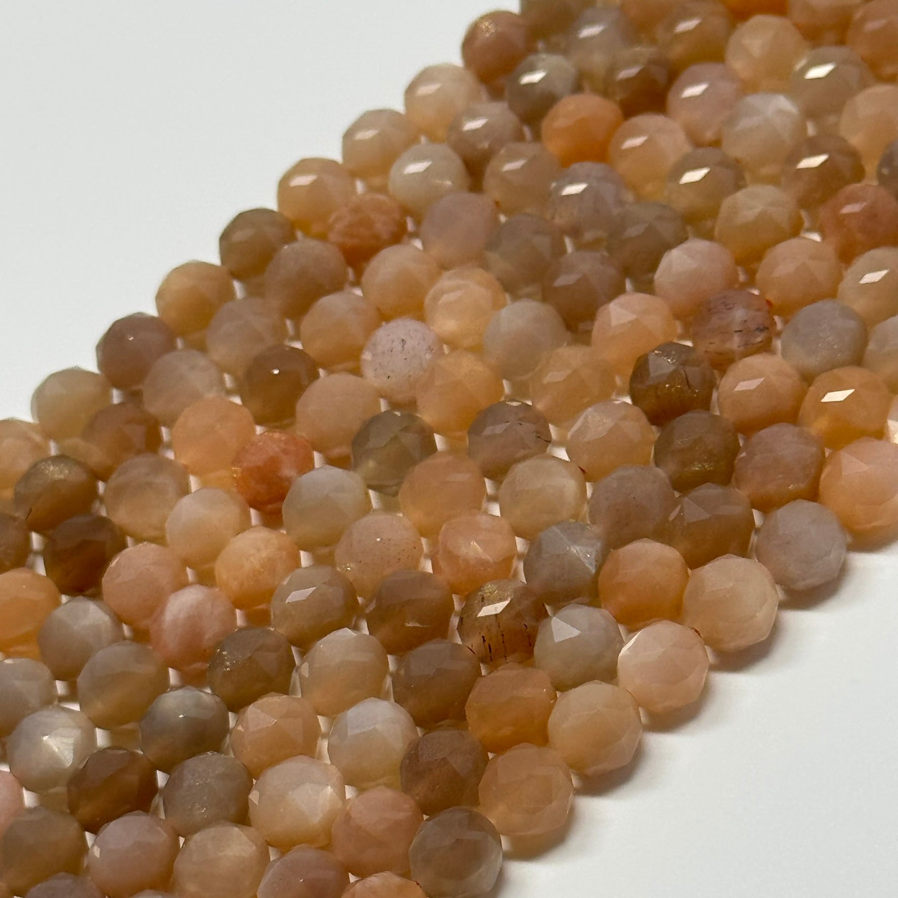 Sunstone & Moonstone Faceted Diamond-Cut Round Beads - (AA Quality)