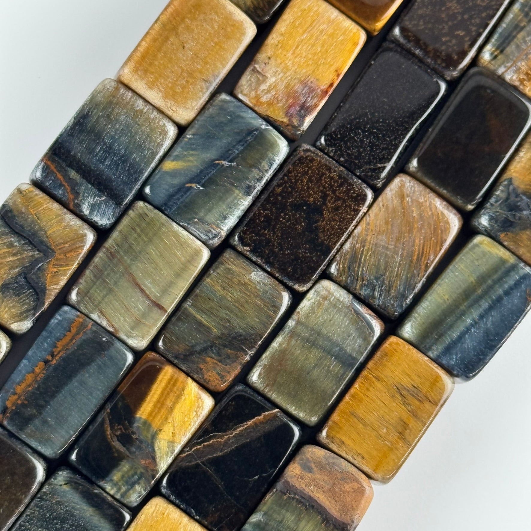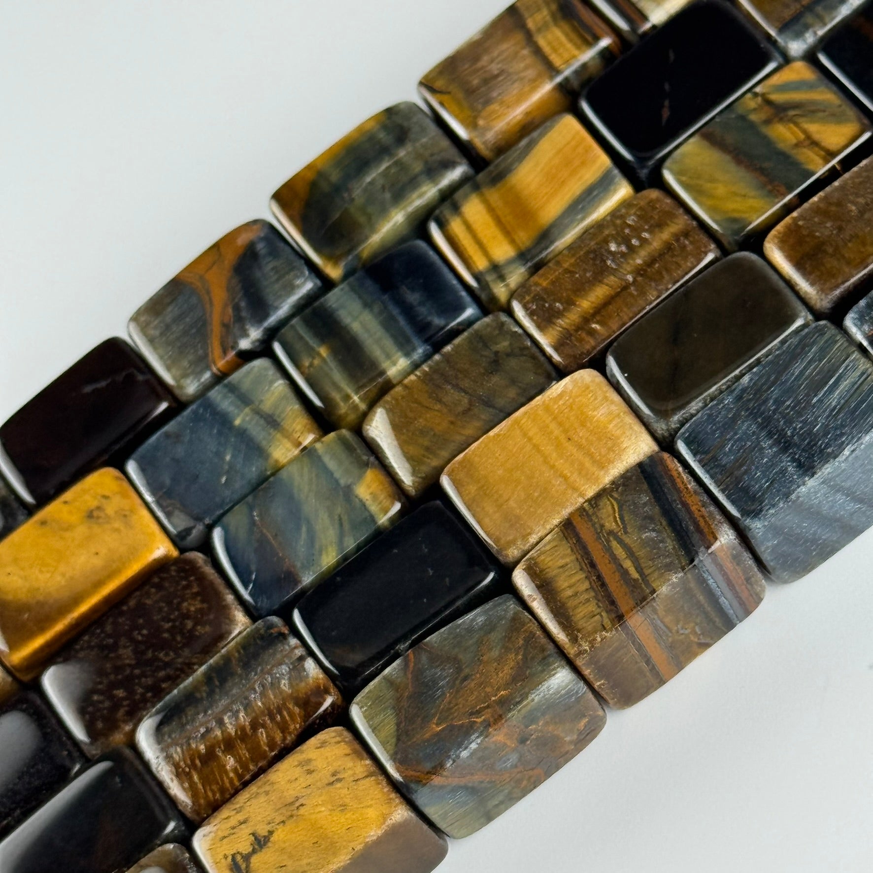 Bring bold contrast and captivating color play to your designs with our Tiger's Eye Blue/Brown Rectangle Beads (AB Quality) 🐅🔷✨. These striking beads combine the classic golden shimmer of brown Tiger’s Eye with the rare, deep blue variety—creating a stunning dual-tone effect. Their sleek rectangular shape adds structure and modern elegance, making them perfect for standout bracelets, geometric necklaces, and unique artisan creations.