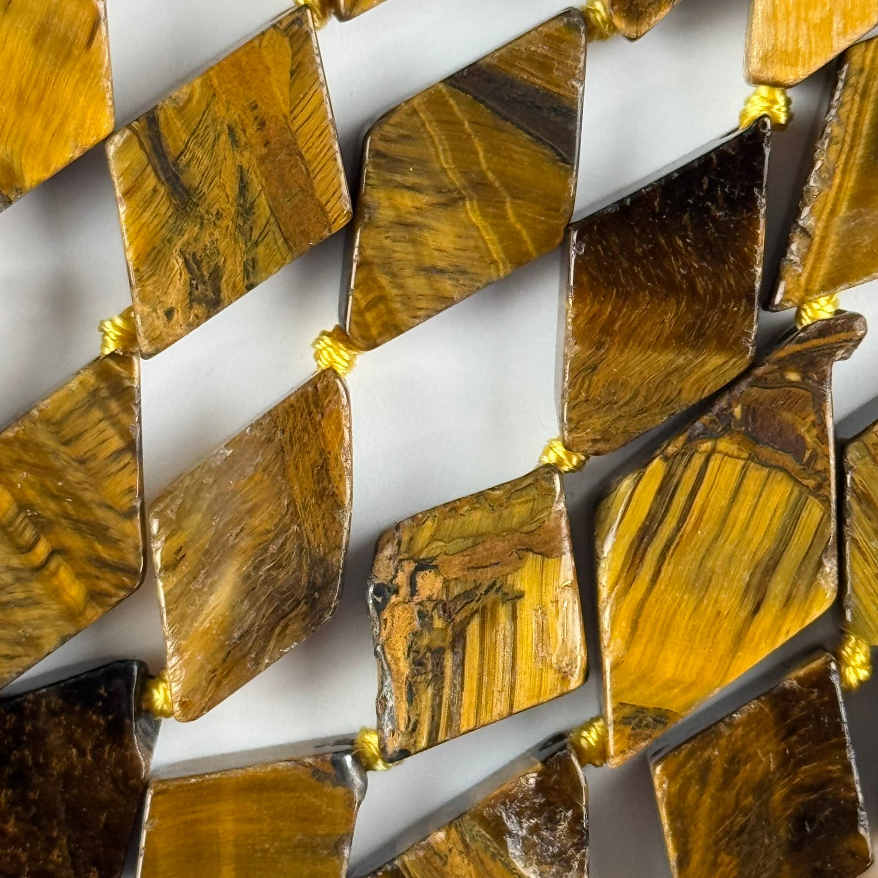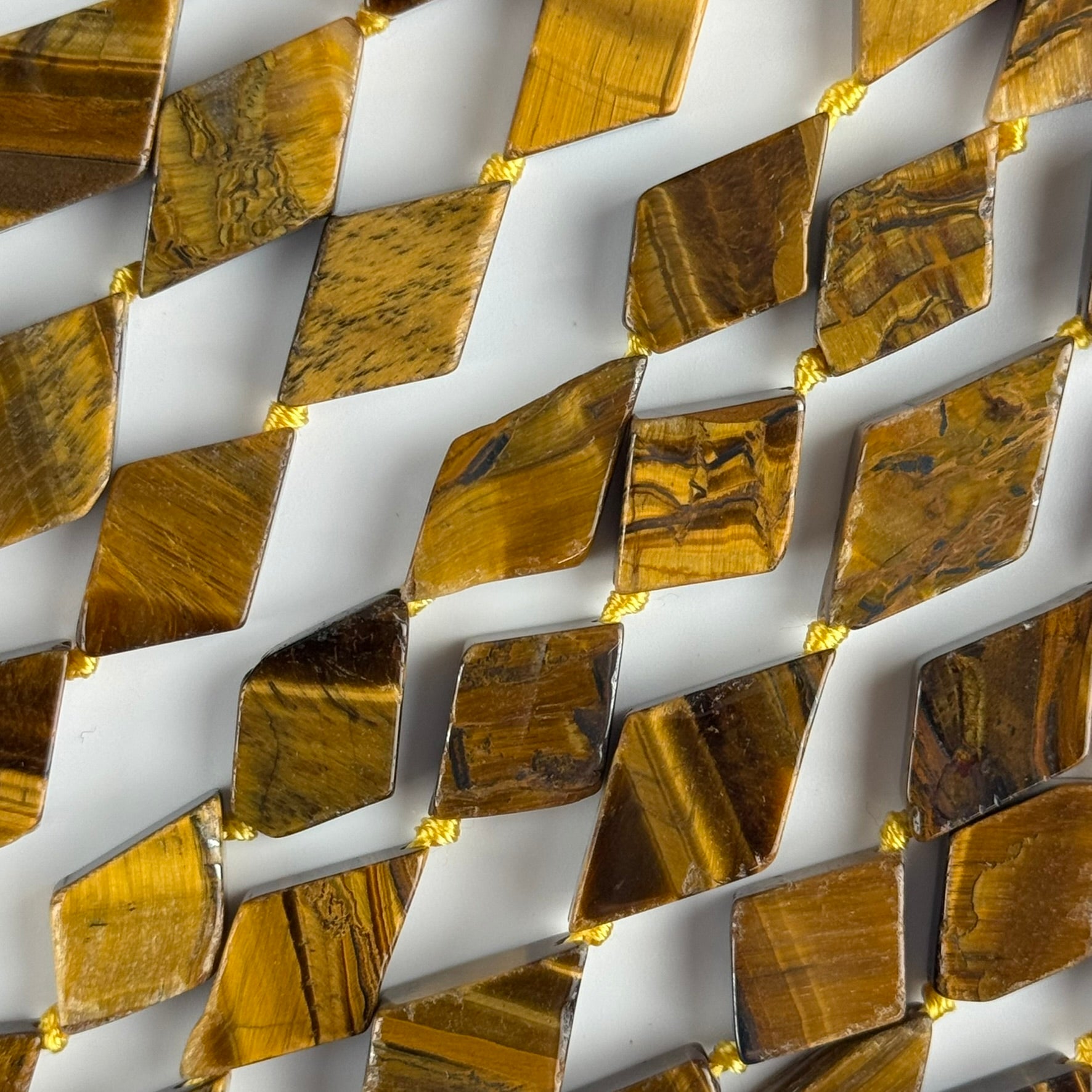 Add graceful elegance and warm golden shimmer to your jewelry with our Tiger's Eye Lozenge Beads (AB Quality) 🐅✨. These uniquely shaped beads feature a smooth, elongated diamond-like silhouette that enhances the stone’s signature bands of caramel, honey, and deep brown. Their refined shape and natural glow make them perfect for artistic bracelets, flowing necklace designs, and stylish geometric creations.