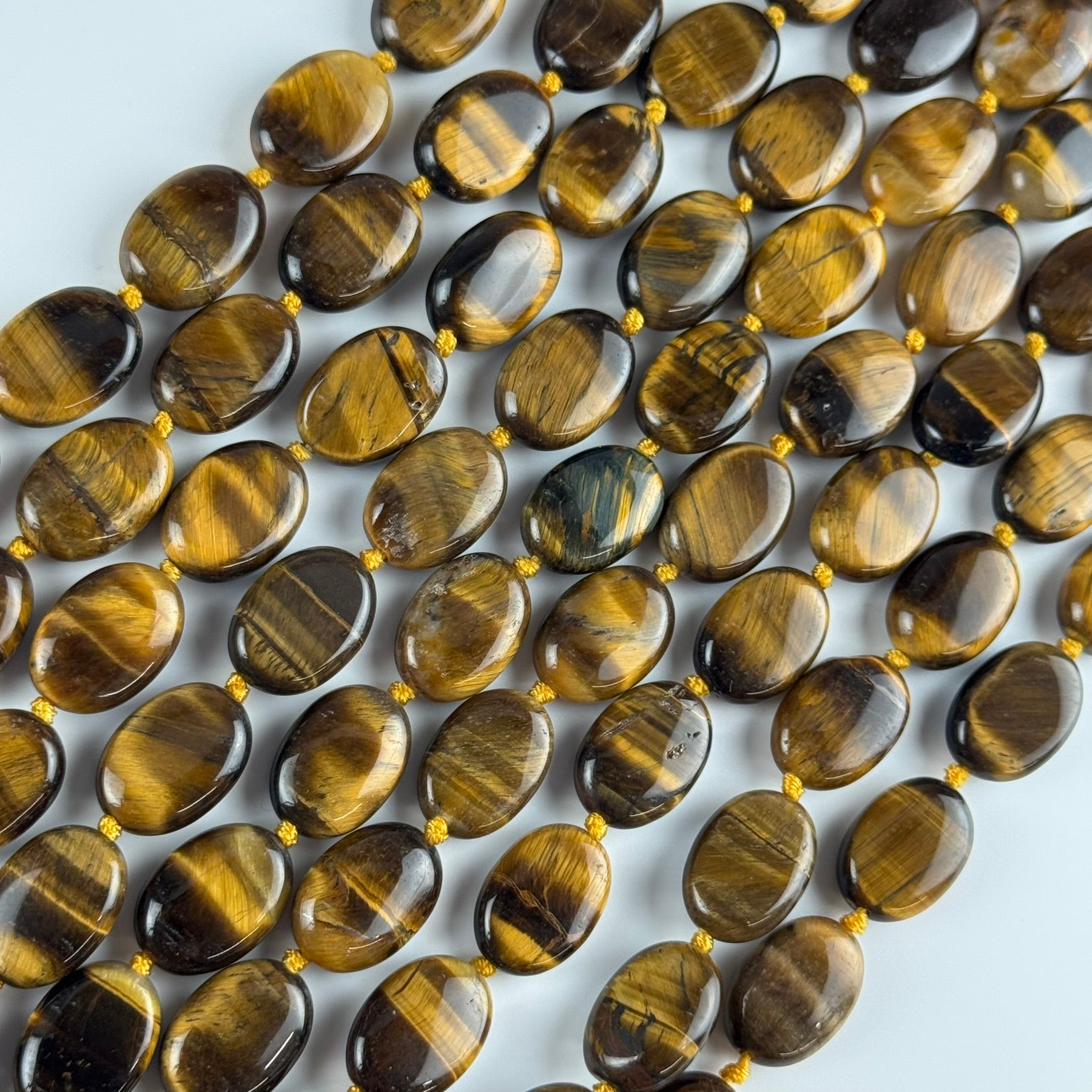 Bring smooth elegance and warm golden radiance to your creations with our Tiger's Eye Oval Polished Beads (A Quality) 🐅✨. These beautifully shaped oval beads highlight the mesmerizing chatoyancy of Tiger’s Eye—glowing bands of caramel, honey, and rich brown that shift effortlessly under the light. Their elongated, polished form adds a refined, flowing look, perfect for necklaces, bracelets, earrings, and sophisticated gemstone accents.