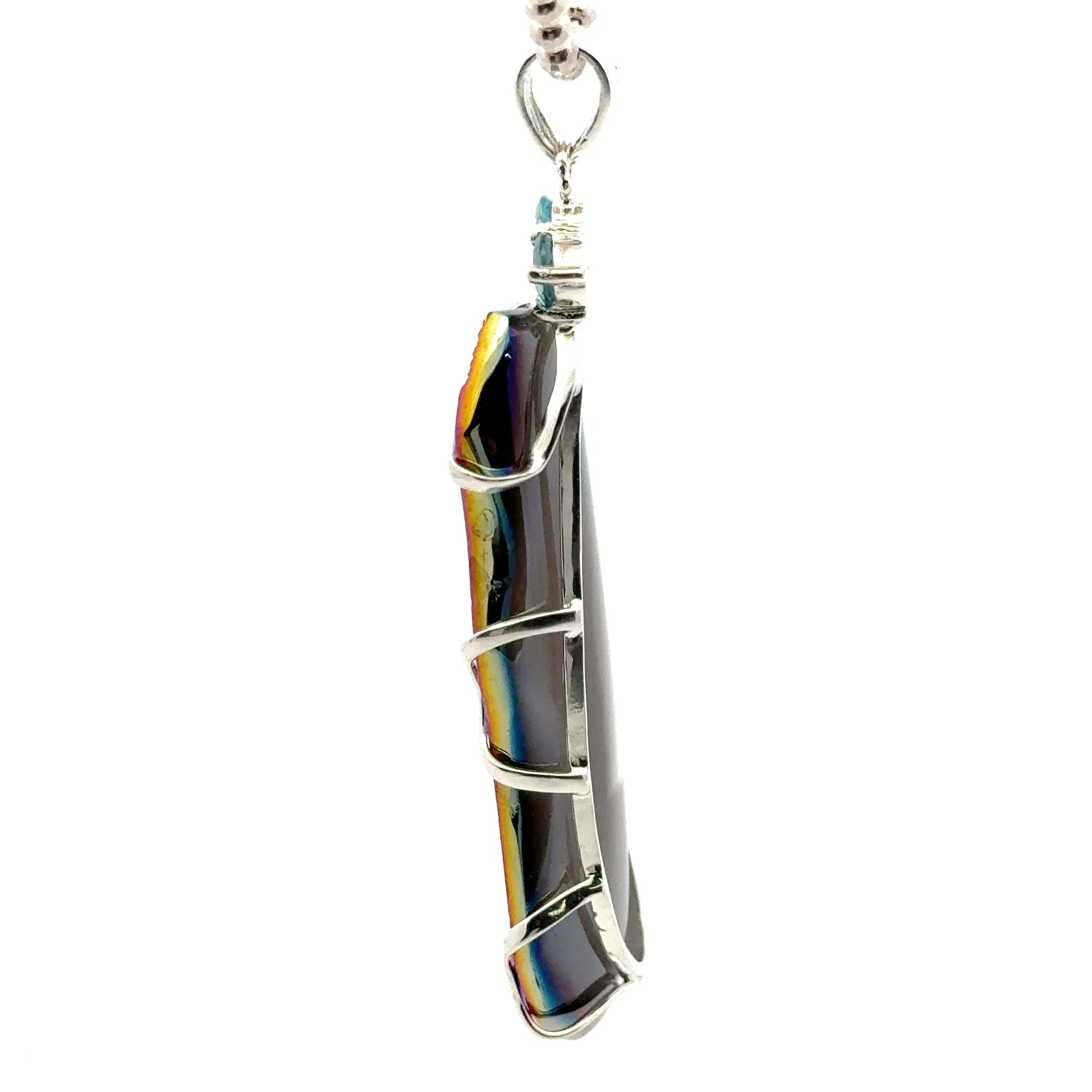 Titanium-Coated Druzy Pendant with Three Blue Zircons